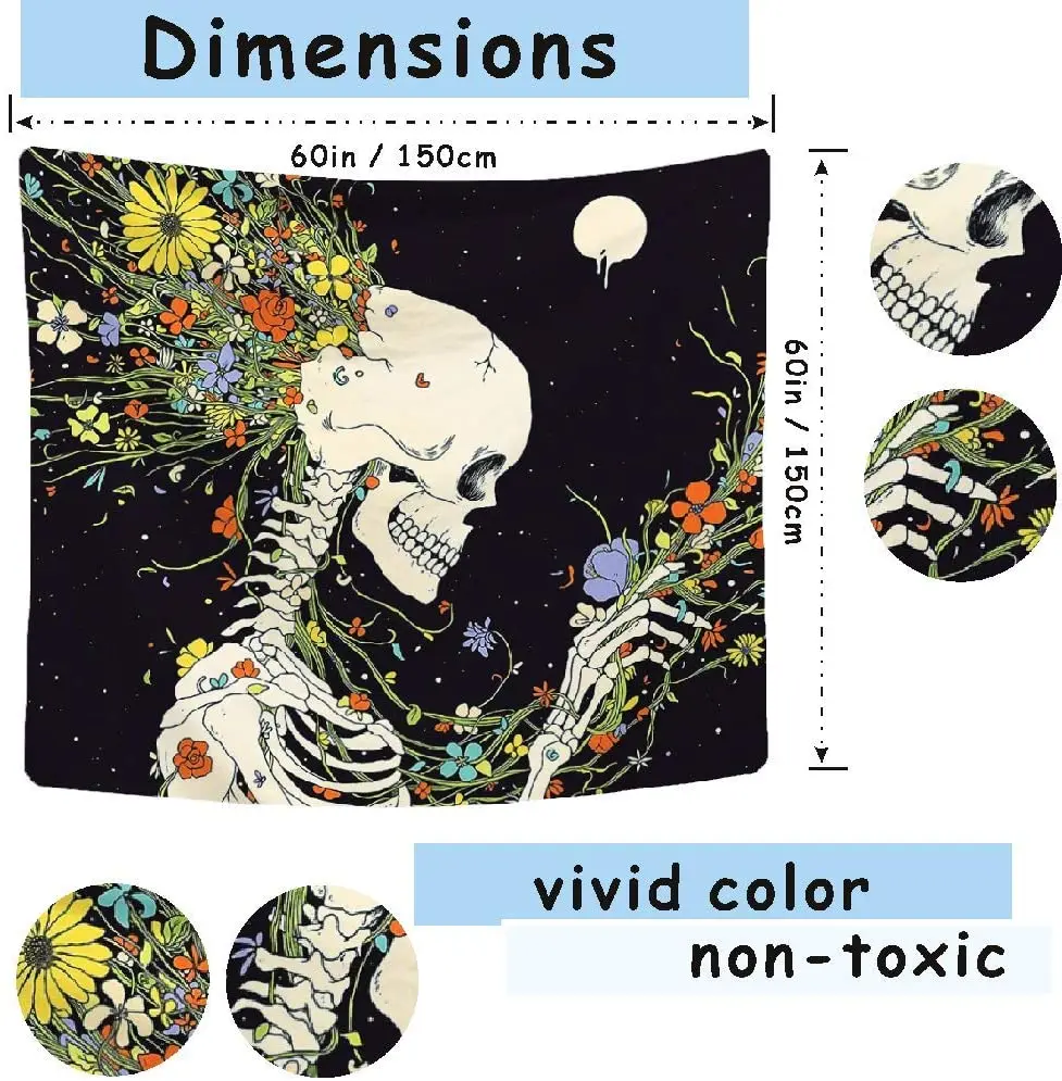 2022 гобелен с черепом Hawkalice Скелет гобелены декор для комнаты настенный гобелен хиппи настенный гобелен для спальни эстетический 60X60 дюймов