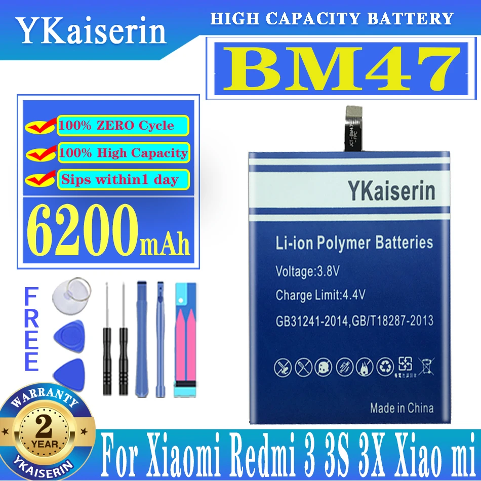 YKaiserin запасная батарея для Xiaomi Redmi 3 3S 3X 4X Redmi3 Pro Hongmi Redrice 3 3s BM47 натуральная батарея 6200 мАч 4,9 бесплатные инструменты отслеживание нубмера