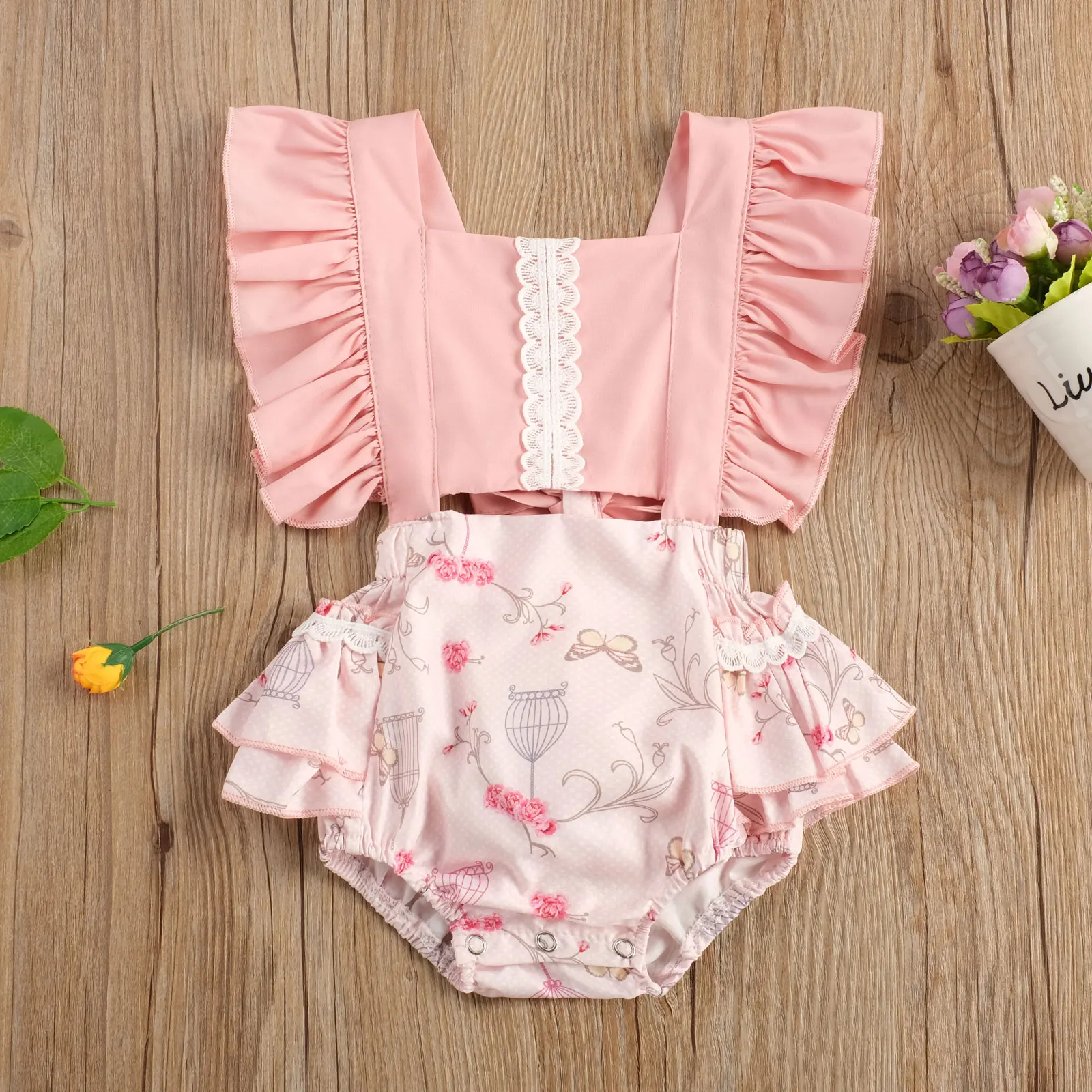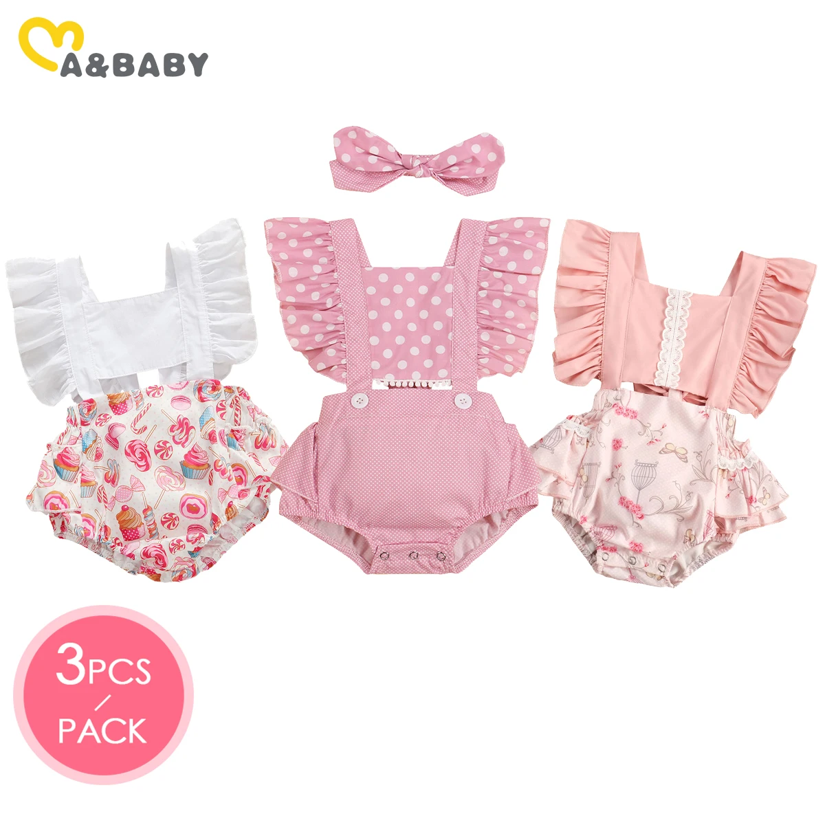 Ma ребенка в возрасте 3 шт.упак. новорожденных младенческой детские комбинезоны для маленьких девочек; Милый комбинезон с оборками и рисунком пончика Цветочный принт спортивный костюм 3 предмета в комплекте, от 0 до 24 месяцев DD43