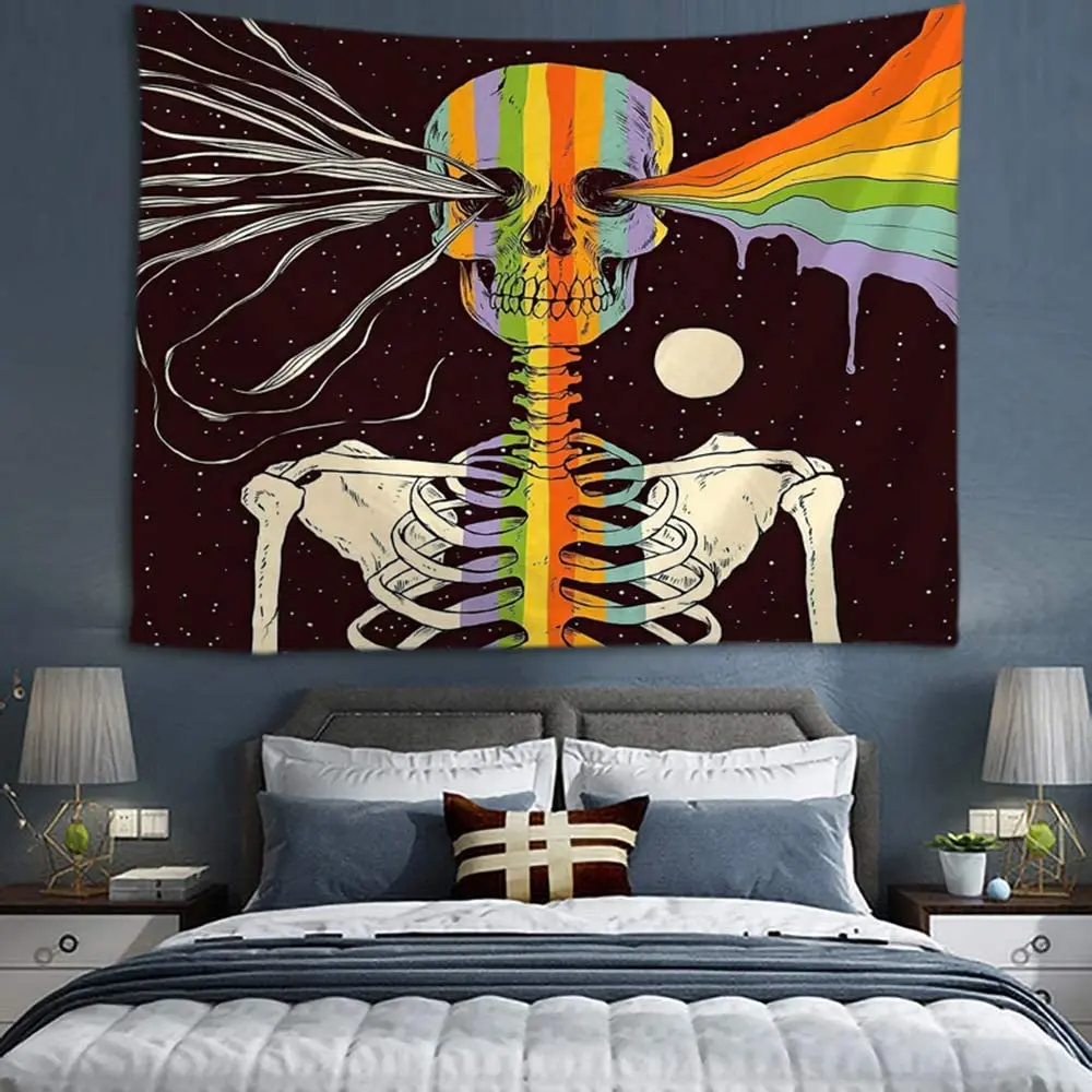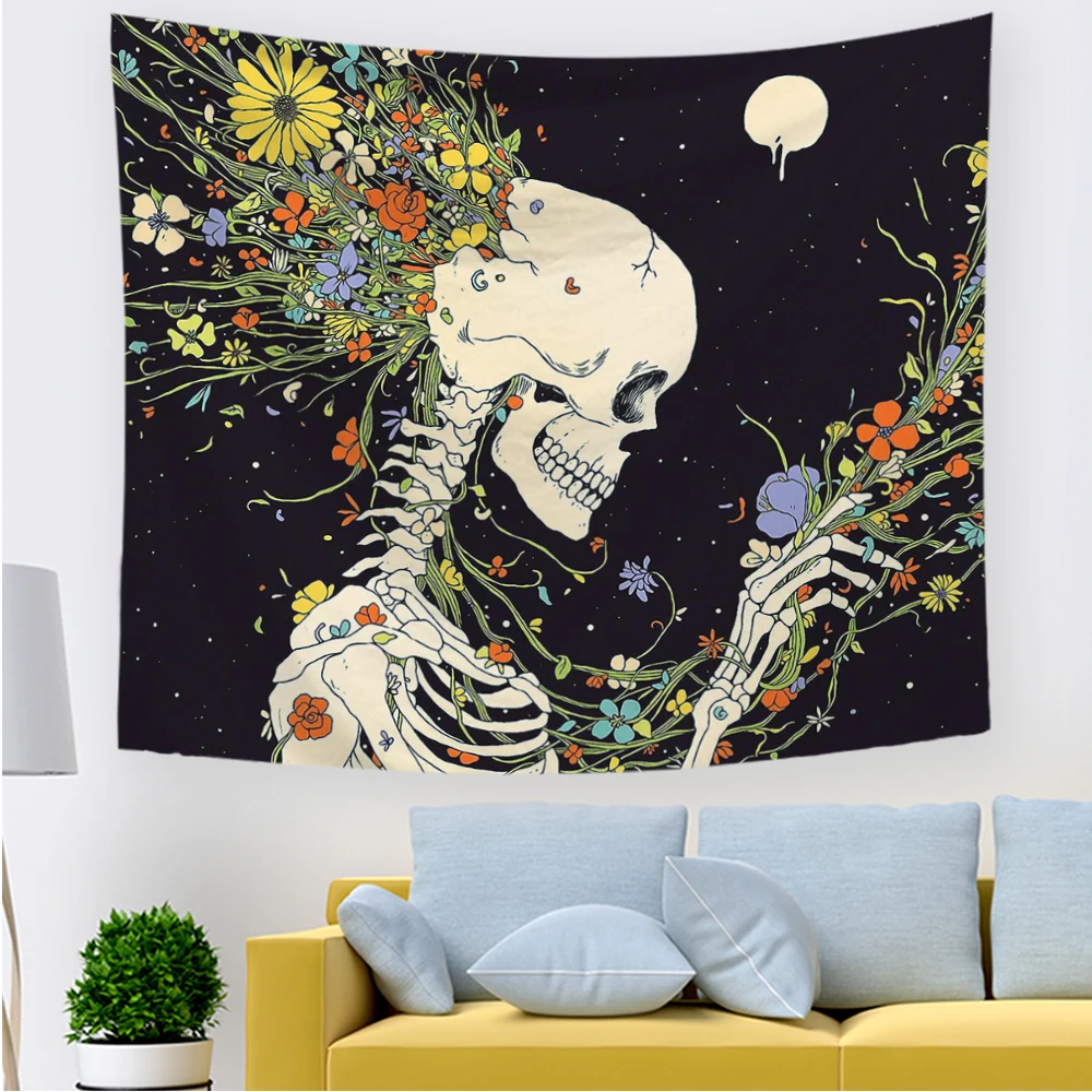 Гобелен с черепом Hawkalice, черно-белый гобелен, настенный гобелен в эстетике, настенный гобелен для спальни, хиппи, эстетический Декор для комнаты