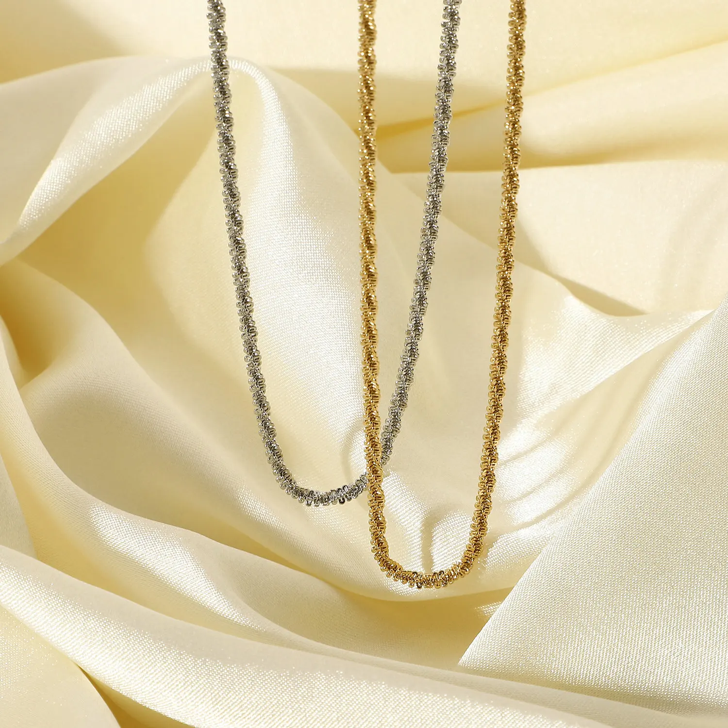 Модные плоские блестящие глянцевые ожерелья-цепочки золотого и сере...