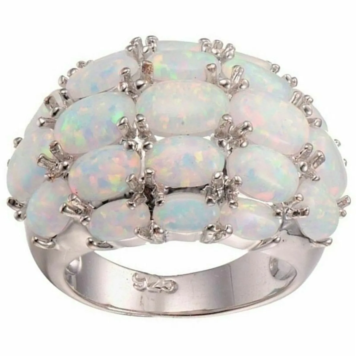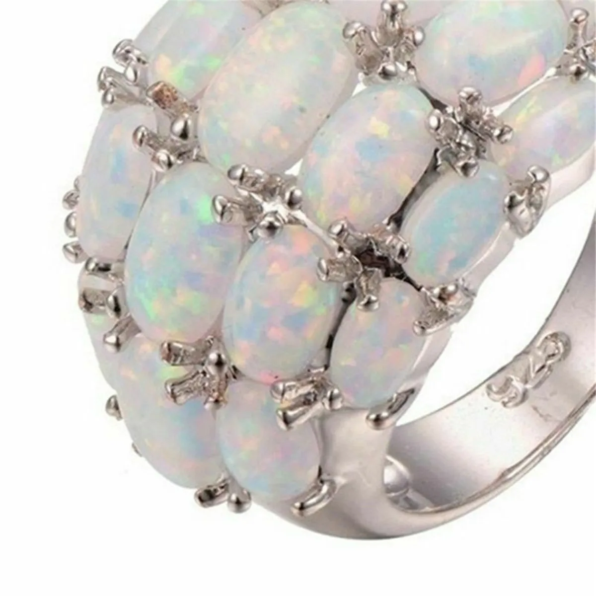 Модное винтажное кольцо с огненным опалом и жемчугом, Серебряное Женское Обручальное украшение, овальное