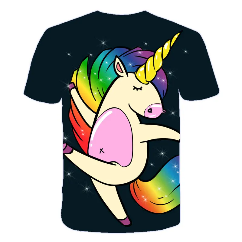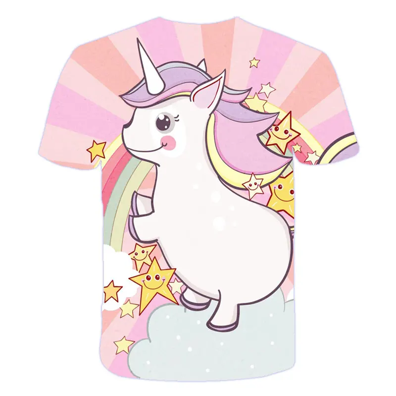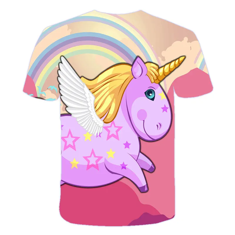 Футболки для девочек с 3d принтом единорога, Милая футболка с единорогом, верхняя одежда, детские футболки, мультяшная одежда, повседневная футболка для подростков для детей