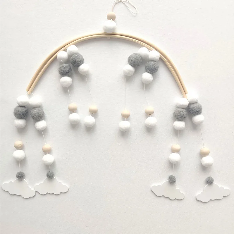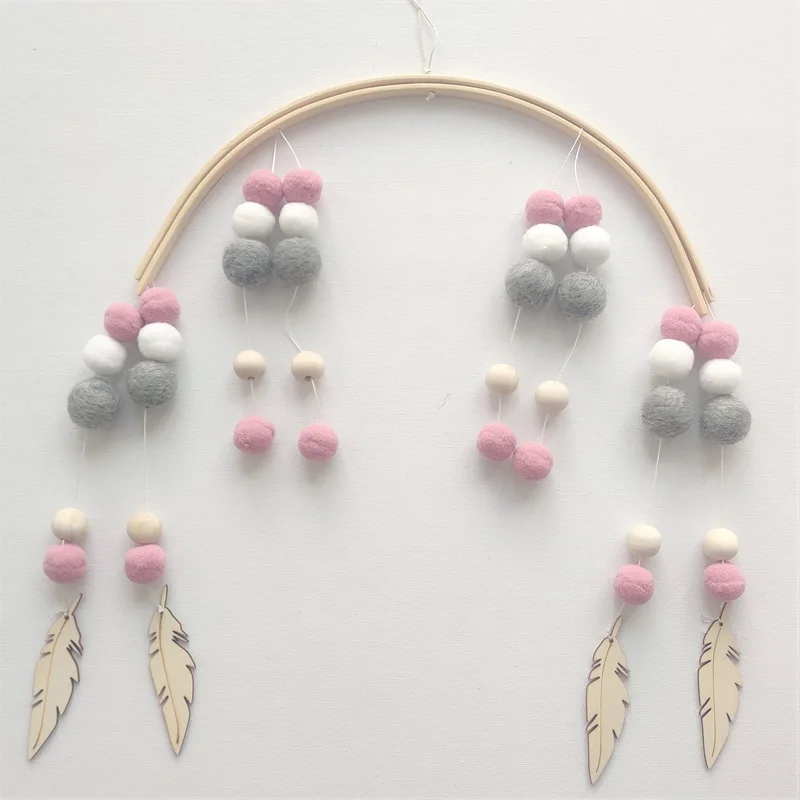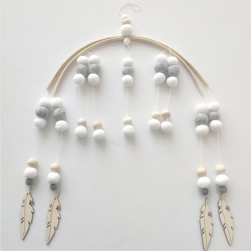 Скандинавские деревянные бусины, колокольчики с шерстяными шариками...