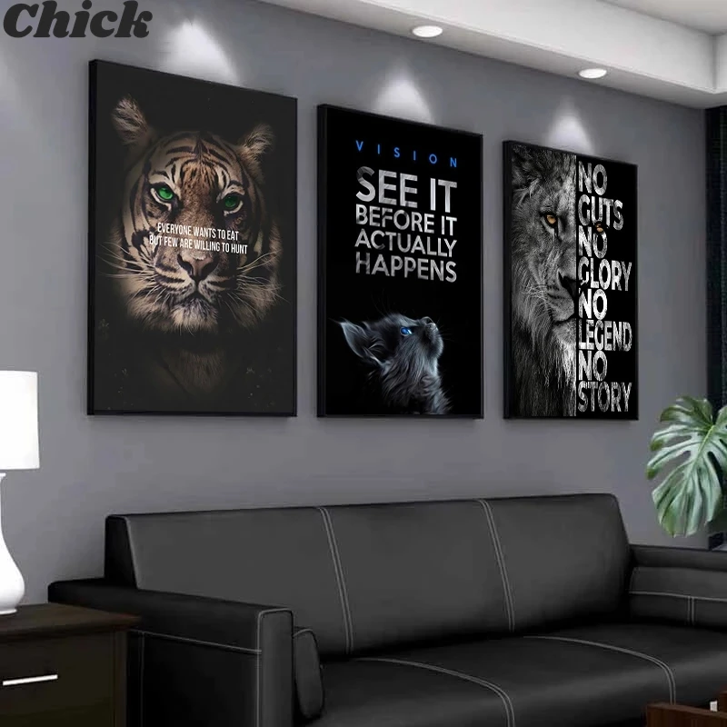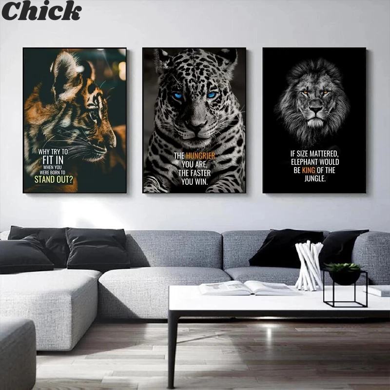 Вдохновляющие животные, плакат, холст, фотография со львом и слоном для гостиной, плакаты и принты, настенные картины