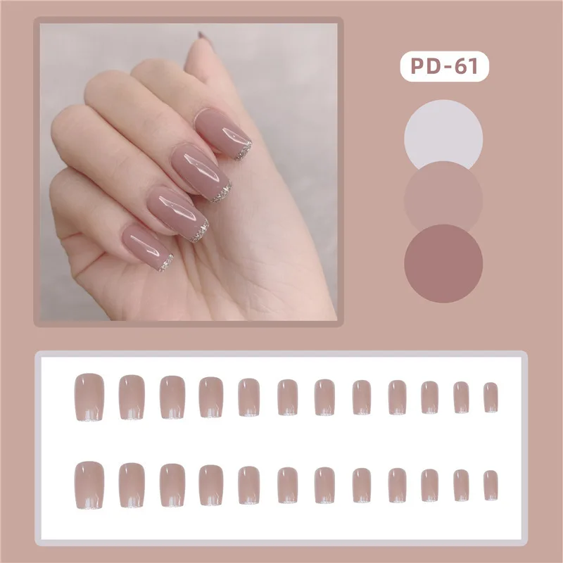 24 шт. блестящие съемные накладные ногти балерины розовые носимые н...