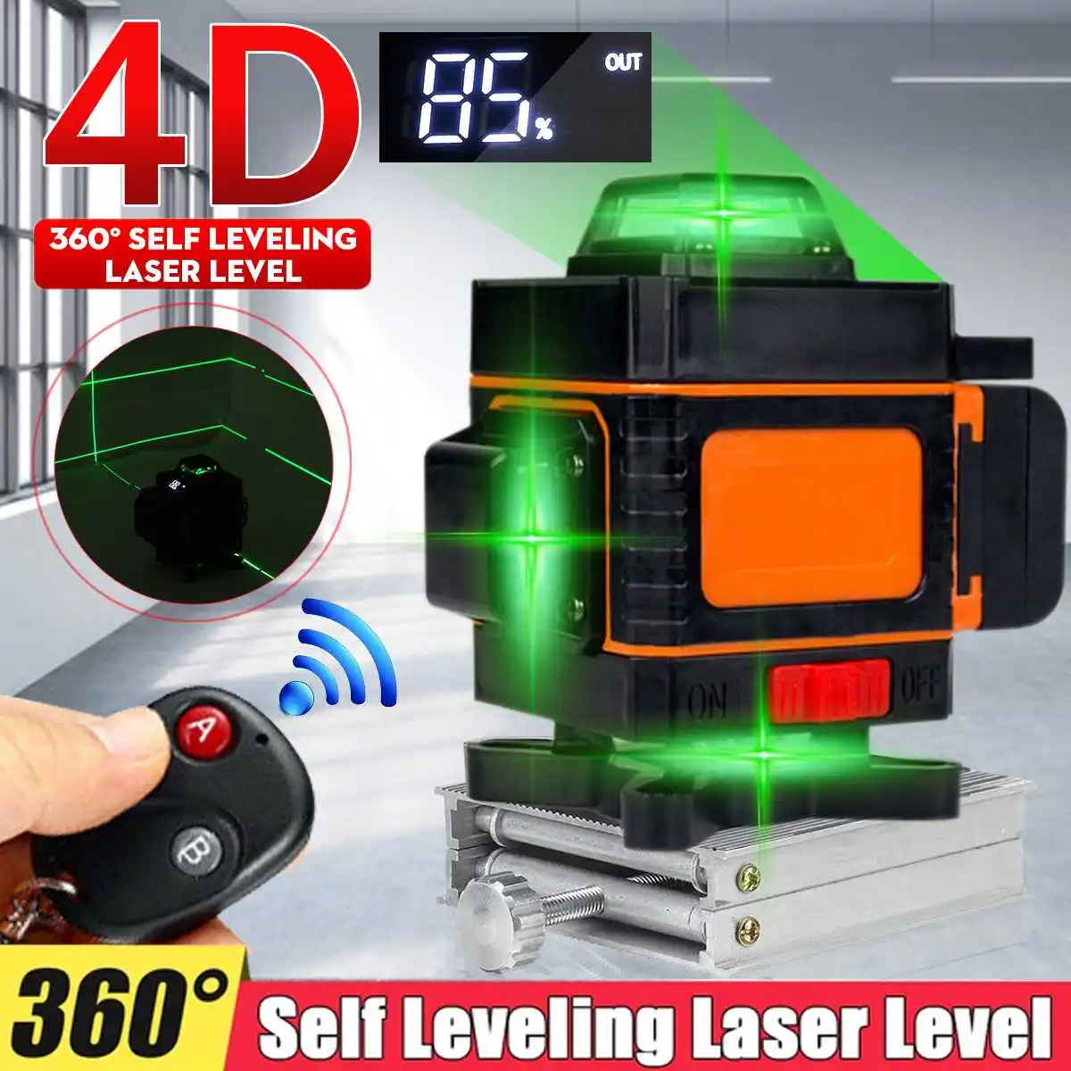 4D 16 линий зеленые Лазерные уровни 360 горизонтальный и вертикальный Крест линии с функцией автоматического самовыравнивания супер мощный в помещении и на открытом воздухе