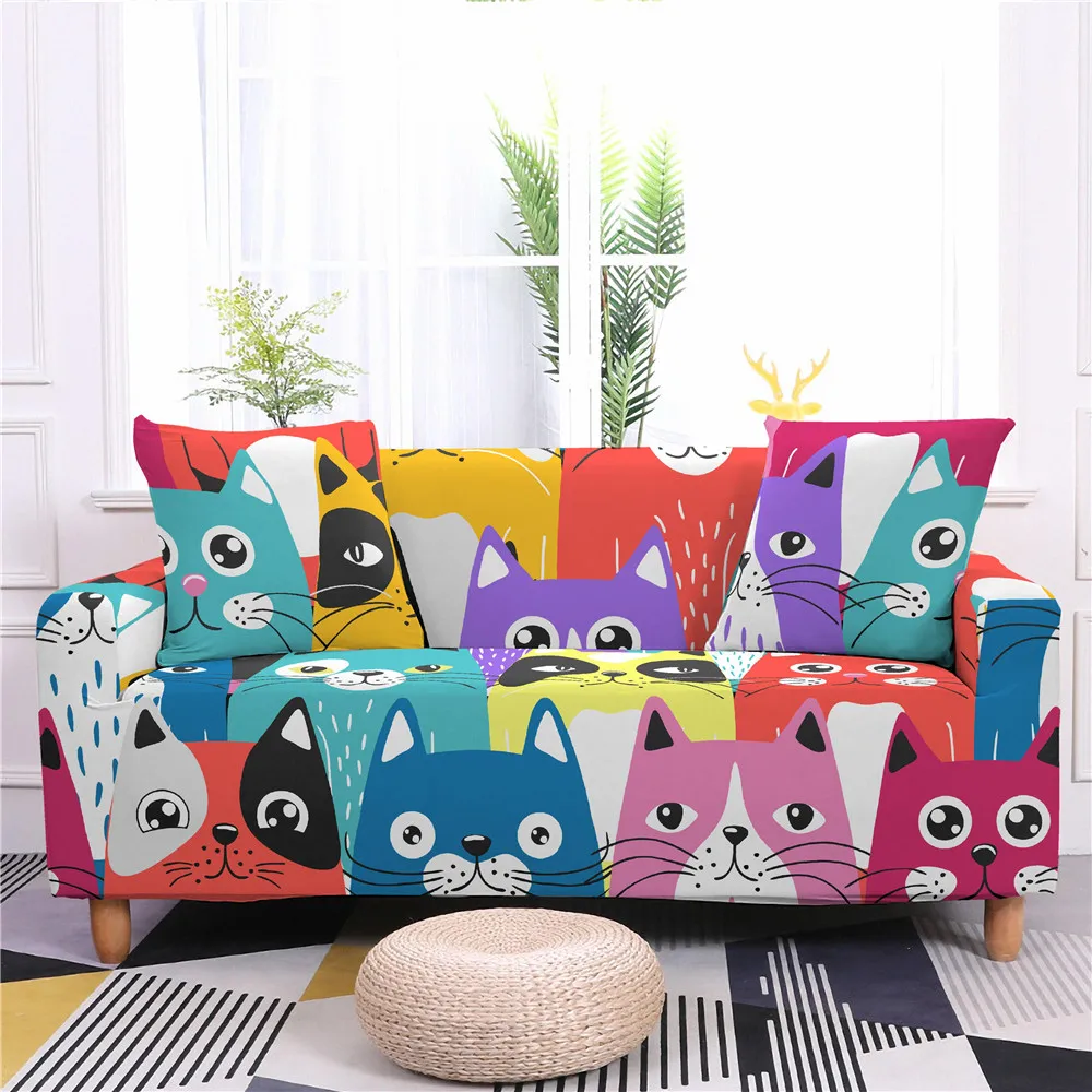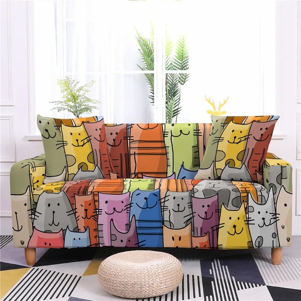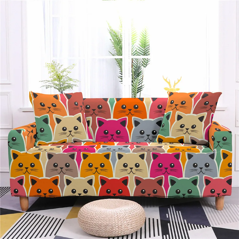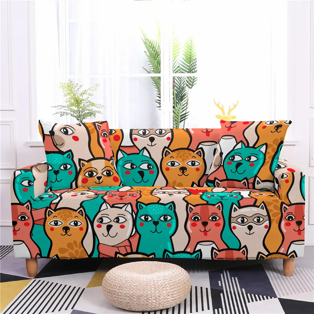 Забавные милые кошачьи Угловые чехлы для диванов для дома, все диваны, эластичные Чехлы, мешок, шезлонг, чехлы для кресла, декор мебели