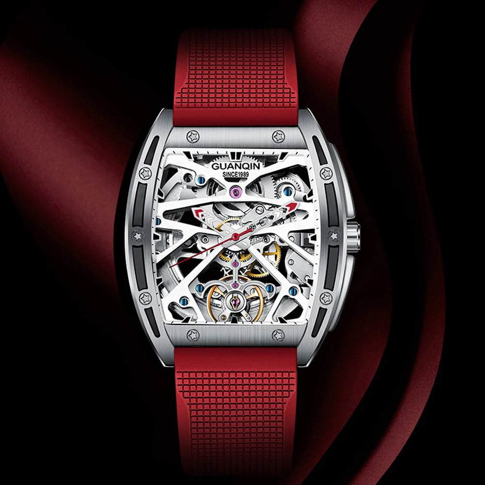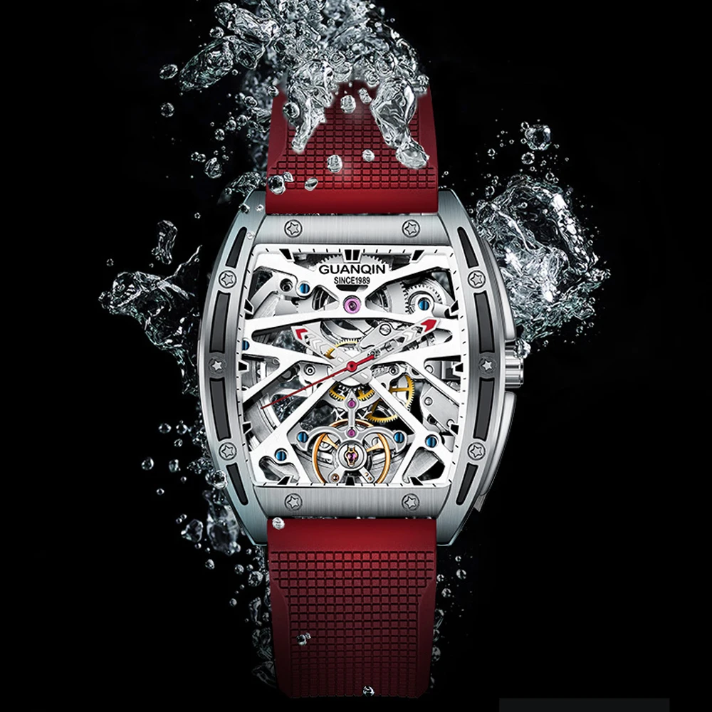 GUANQIN механические часы с двойным скелетом водонепроницаемые мужс...