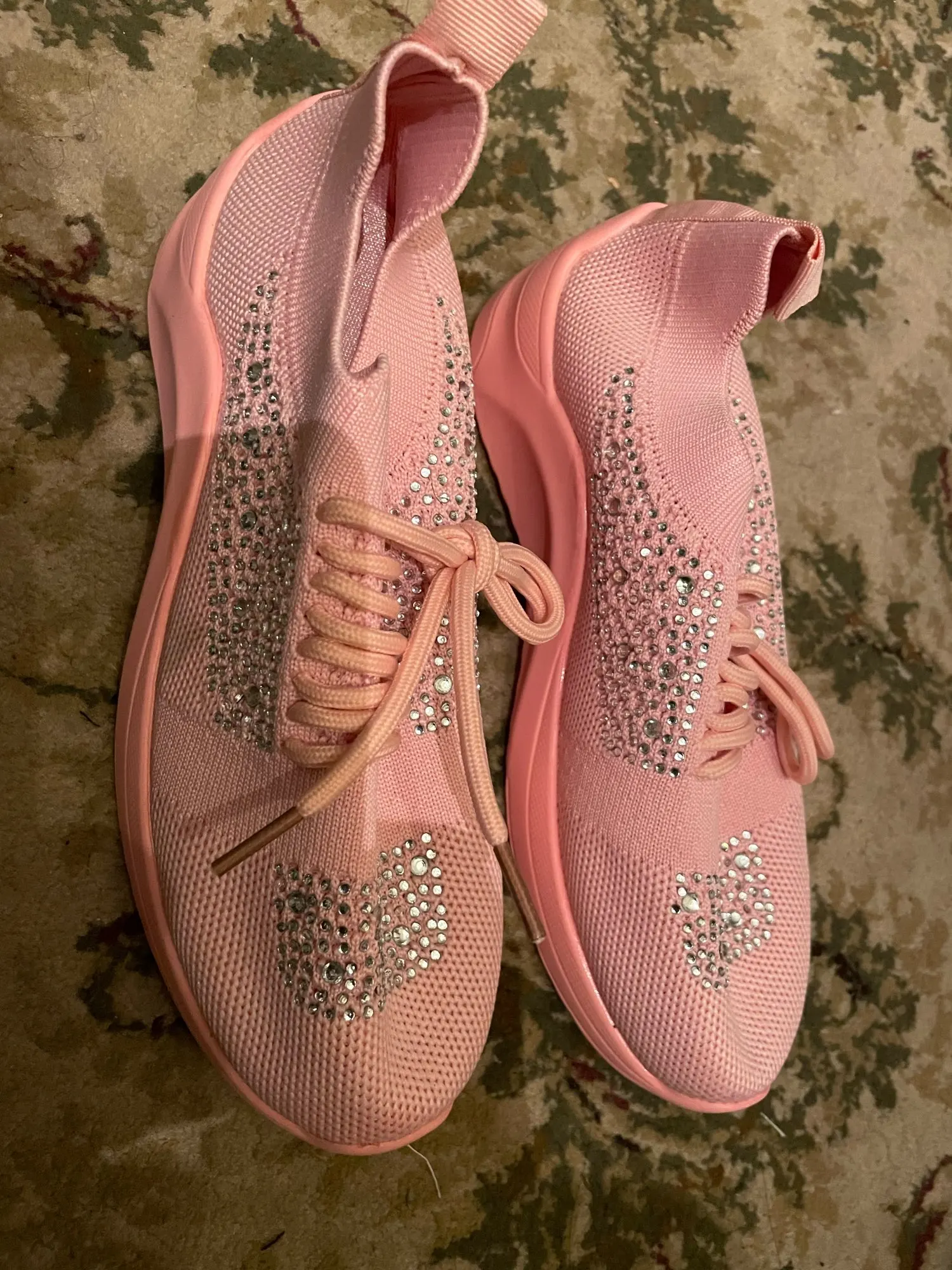 Точно как на фото. Заказанный размер 4,5 идеально смотрится мило... Эта обувь легкая. Почувствуйте себя как материал пены для подошвы с тканью и стразами на них. Не прочный для экстремальных повседневных прогулок или упражнений, но хорошо подходит для легкой повседневной носки. Быстрая доставка. Спасибо!