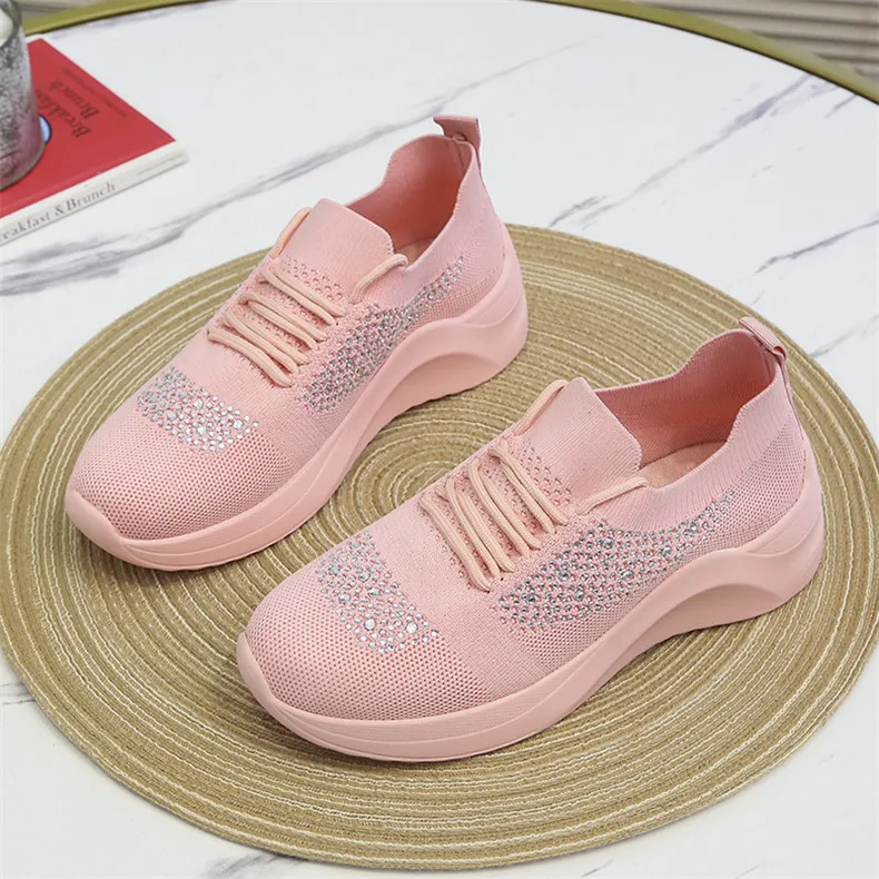 Модная спортивная обувь классические Стразы кроссовки женские уличные кроссовки для спортзала белые розовые кроссовки обувь для бега для женщин