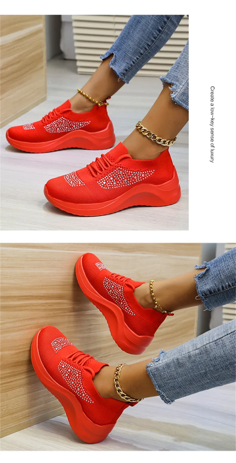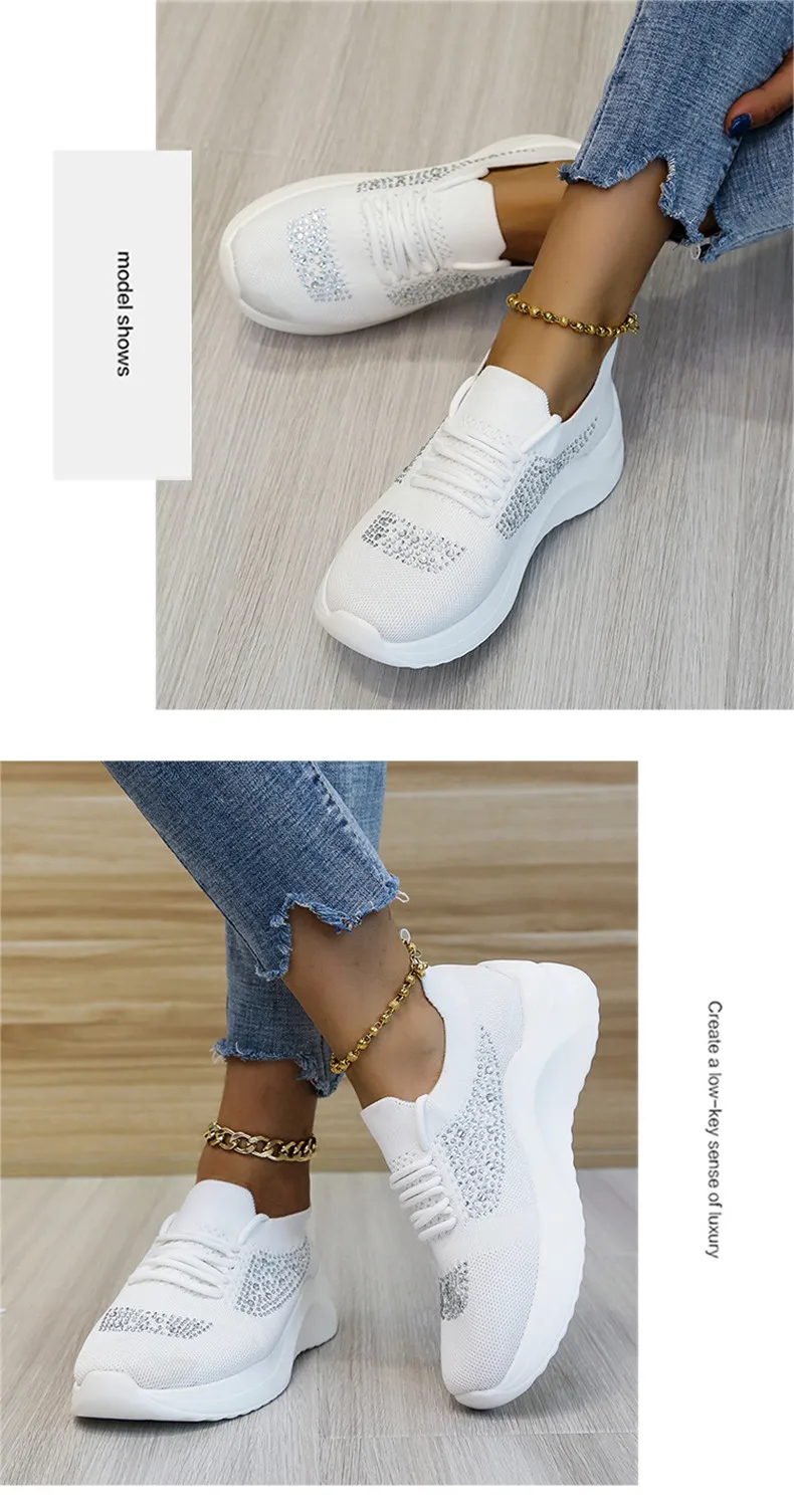 Белые кроссовки на платформе со стразами; Женская обувь; Летняя обувь на массивной платформе; Женские кроссовки; Спортивная обувь; Женская обувь для бега