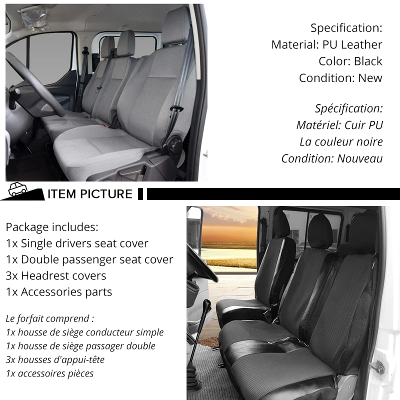 Название продукта: 2 + 1 Чехлы для автомобильных сиденийМатериал: полиэстер + искусственная кожаЦвет: красный/синий/серыйСпециальные Особенности: Защитите свое автокреслоПрименимые модели: для Jumpy; Fiat Ducato, Scudo; Transit Custom; Iveco Ежедневно; Mercedes Sprinter, Vito; Primavstar; Opel Movano, Vivaro; Peugeot Boxer, Expert; Renault Master, Trafic; toyota Hiace; VW LT, T4, T5 и т. Д.