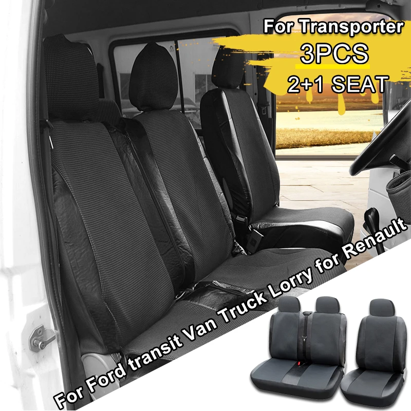 2 + 1 Тип чехлы на сиденья автомобиля Универсальный Fit с искусственной кожей, грузовик интерьерные аксессуары из нержавеющей стали, аксессуары для VW Transporter T5,golf 3