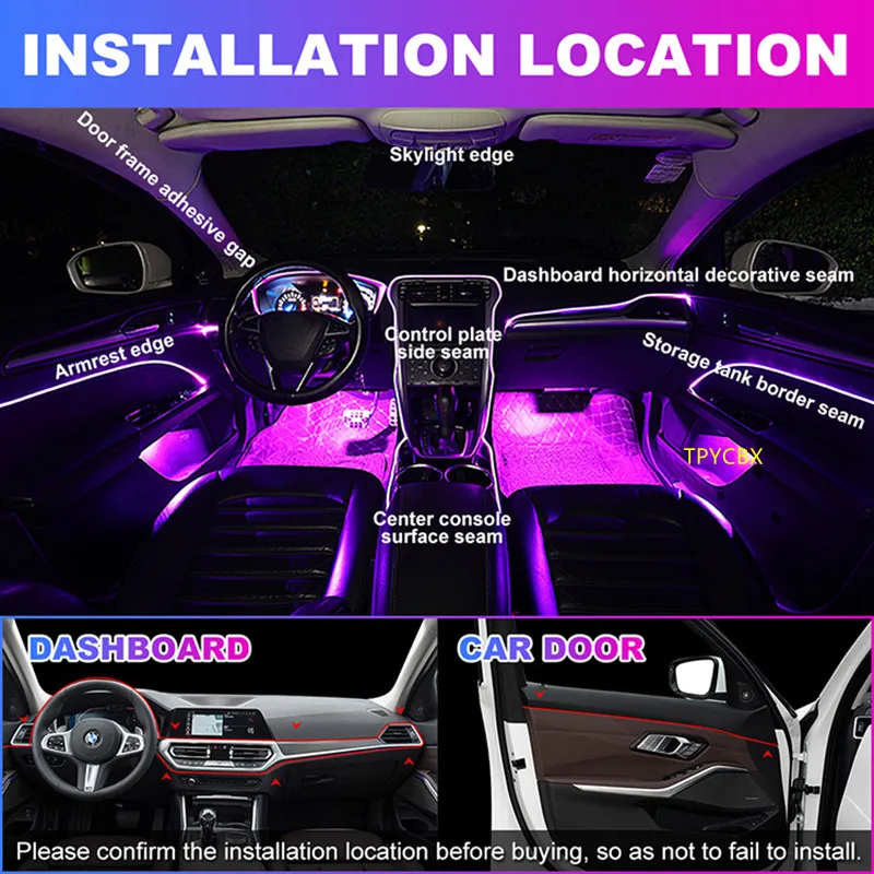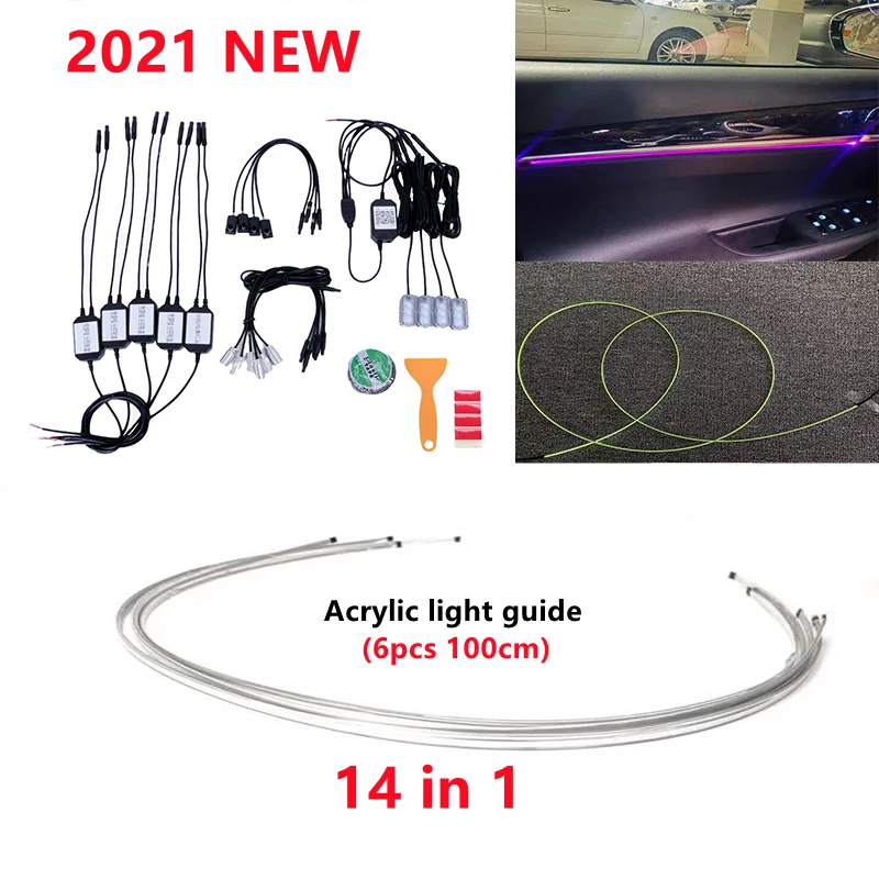 14-в-1: RGB светодиодный атмосферу автомобильный светильник Интерьер окружающего светильник из акрилового волокна ленты оптического светильник с помощью приложения Управление "сделай сам" музыка автомобильный светильник s