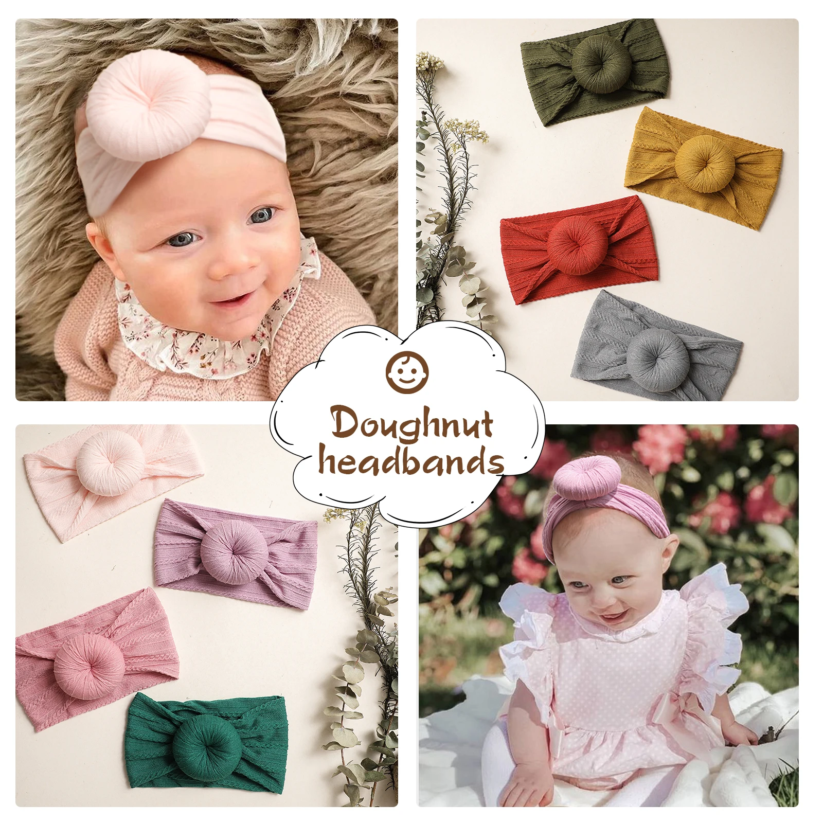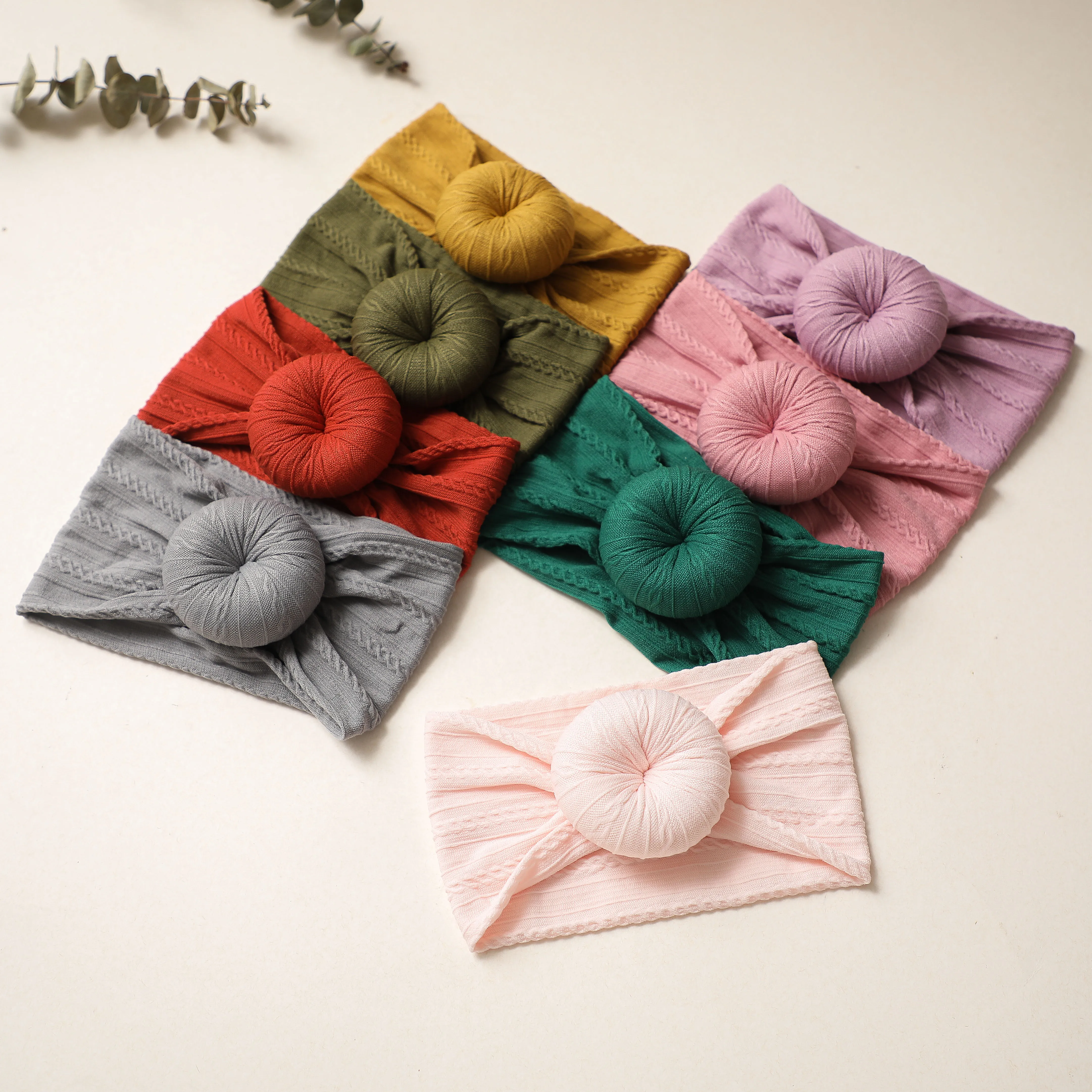1 предмет, однотонное Цвет нейлоновая эластичная повязка на голову, повязка для малышей для девочек и мальчиков с круглым узел эластичные повязки для волос резинка для волос аксессуары для маленьких девочек головные обручи