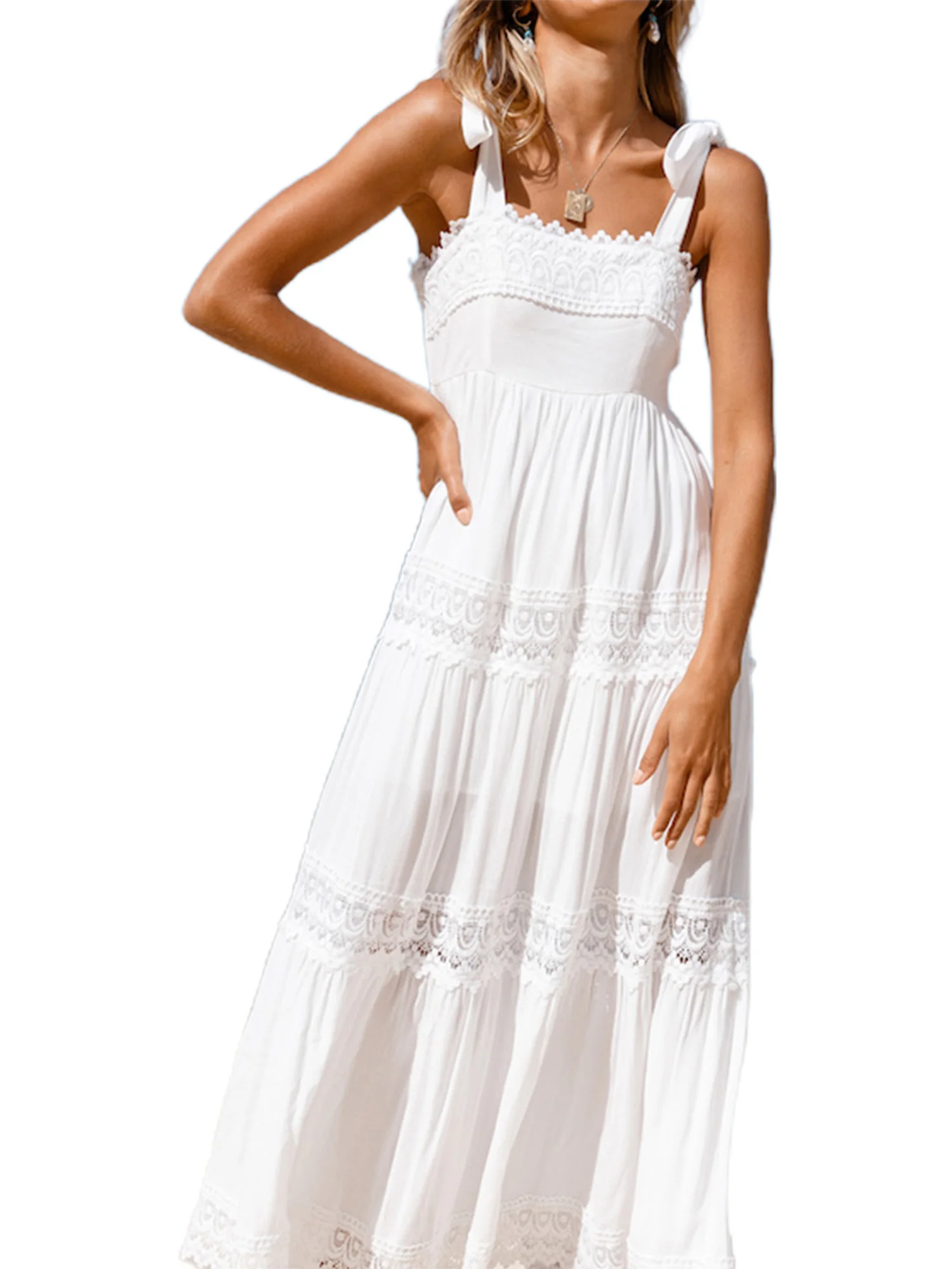 Женский пляжный Пояс для чулок, женское летнее кружевное платье без рукавов, длинное платье на бретелях, Белый сарафан 2021