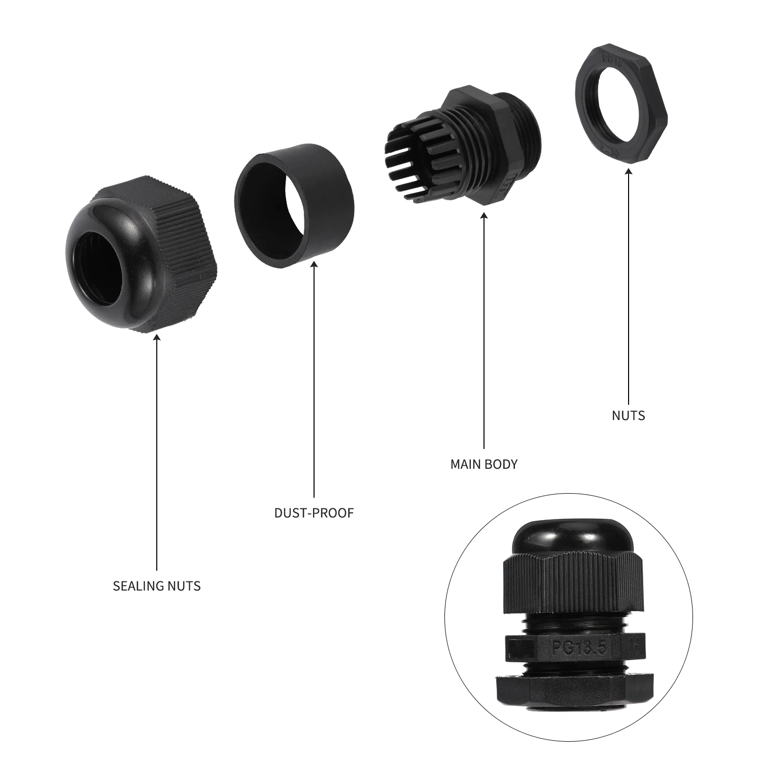 Материал: пластикУплотнение: NBRЦвет: черныйУровень защиты: IP68Диапазон температур: от-40 до 120 градусов ЦельсияКабельные сальники изготовлены из нейлона PA66, оснащены локатором и используются для фиксации кабеля, соединения проводов, коробки управления оборудованием, распределительные панели, электрические приборы и т. Д.Поставляется с прокладкой, обеспечивает уплотнение, зажимное уплотнение и дизайн резьбы, сохраняет кабель герметичным, обеспечивает уровень изоляции, безопасно и надежноПодходит для распределительных коробок, распределительных шкафов, кабельных фиксаторов, проволочных соединений, механических распределительных коробок, распределительных щитов и электрических приборов и т. д.Простота установки: не нужно разъединить фиксатор, кабель может быть вставлен напрямую, затем затянуть легко, другой конец соединений может быть либо соединен с корпусом оборудования.Посылка включает в себя:10 x Кабельный сальник