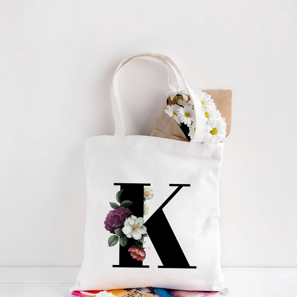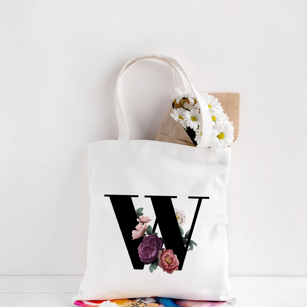 Женская Холщовая Сумка с цветочным рисунком и английским алфавитом
