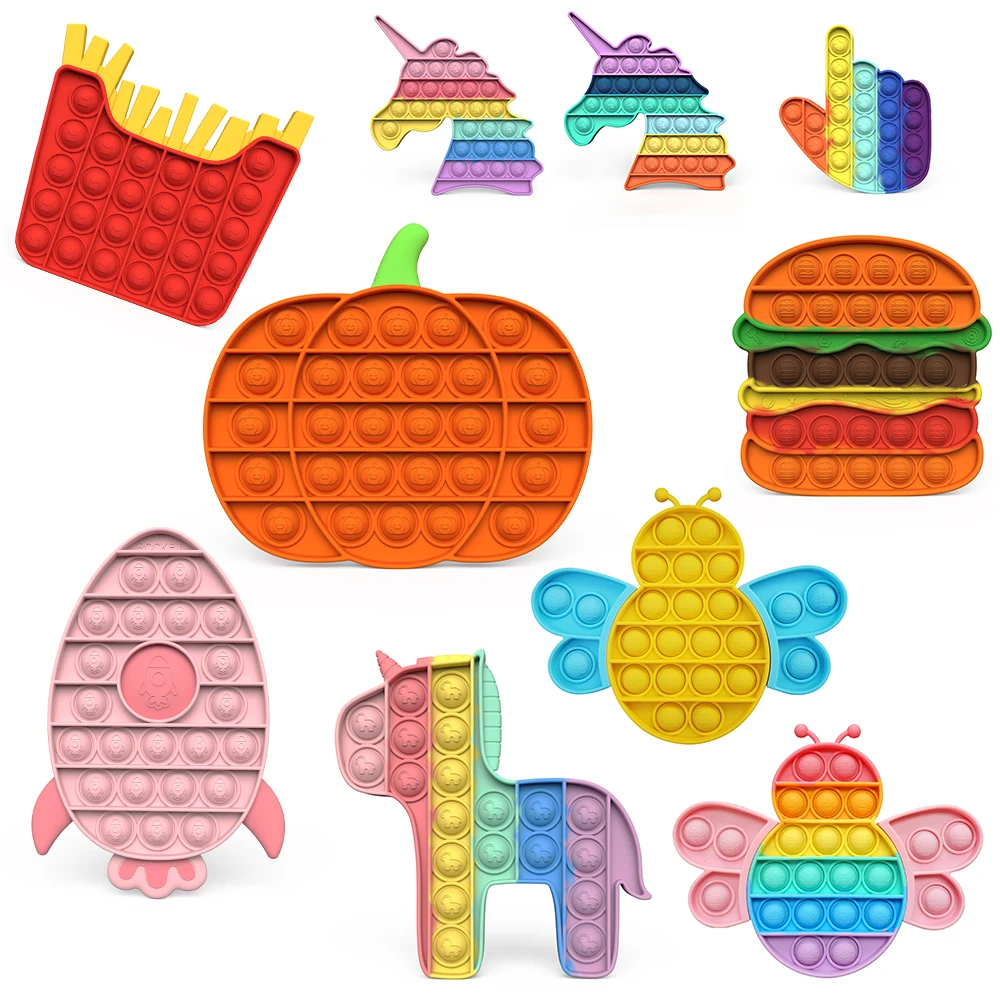 Игрушка-фиджет, Новый Популярный нажимной пузырь, серия гамбургер, фри, единорог, пчела