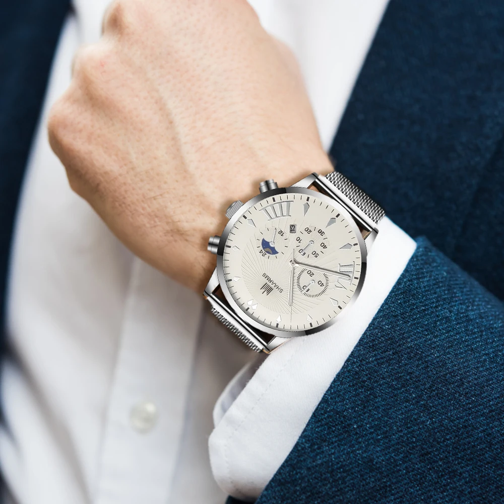 Часы мужскиеженские, многофункциональные, со стальным ремешком
