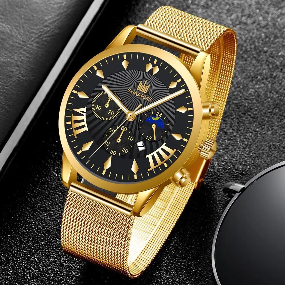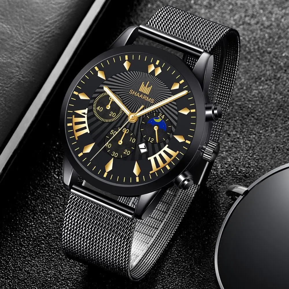 Часы унисекс Мужские, золотистые, серебристые, черные, винтажные, с...