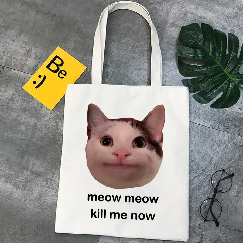 Холщовая Сумка-тоут для покупок с принтом музыкального кота, многоразовый шоппер в стиле Харадзюку, сумка на плечо, студенческие книжные сумки