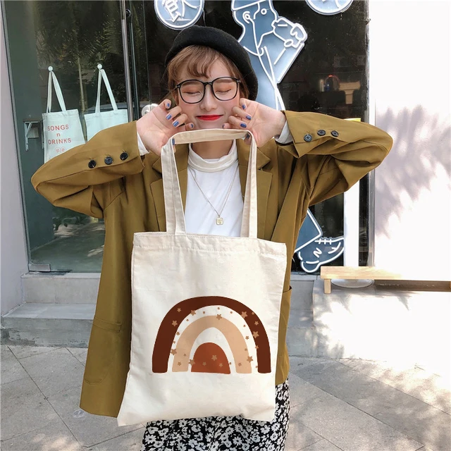 Холщовая Сумка-тоут для покупок с радужным принтом, эстетичная многоразовая сумочка-Шоппер в стиле Харадзюку, студенческие книжные сумки