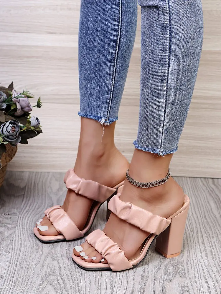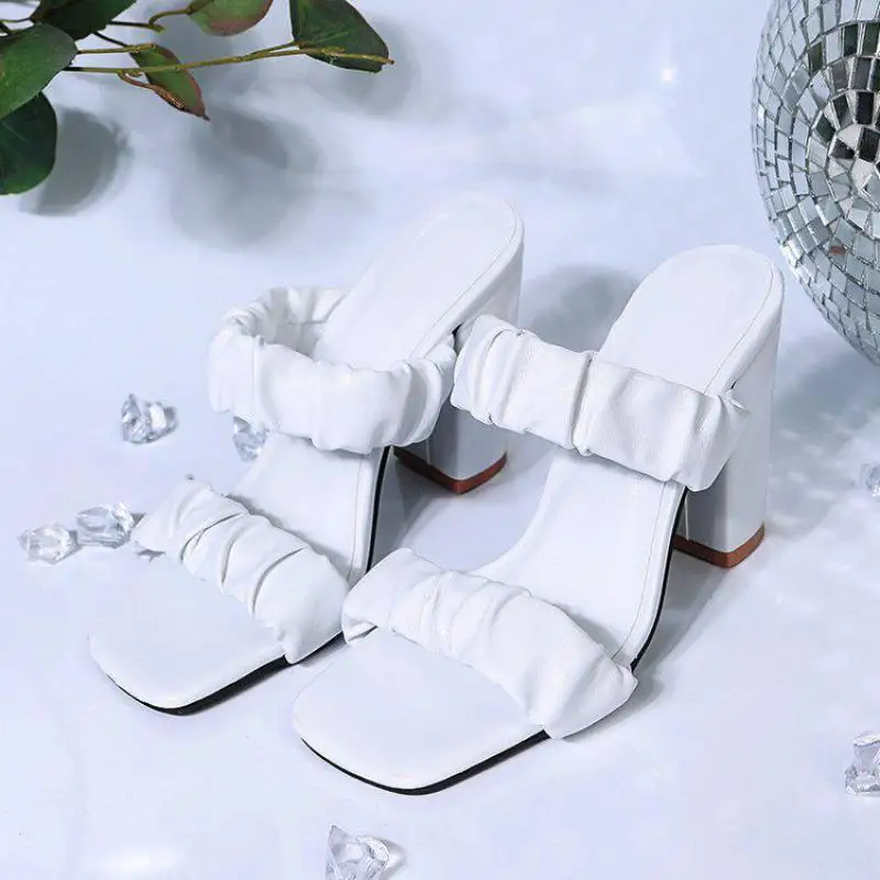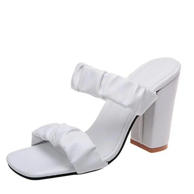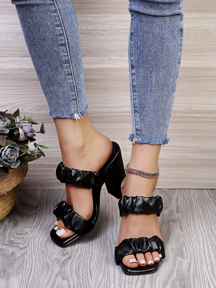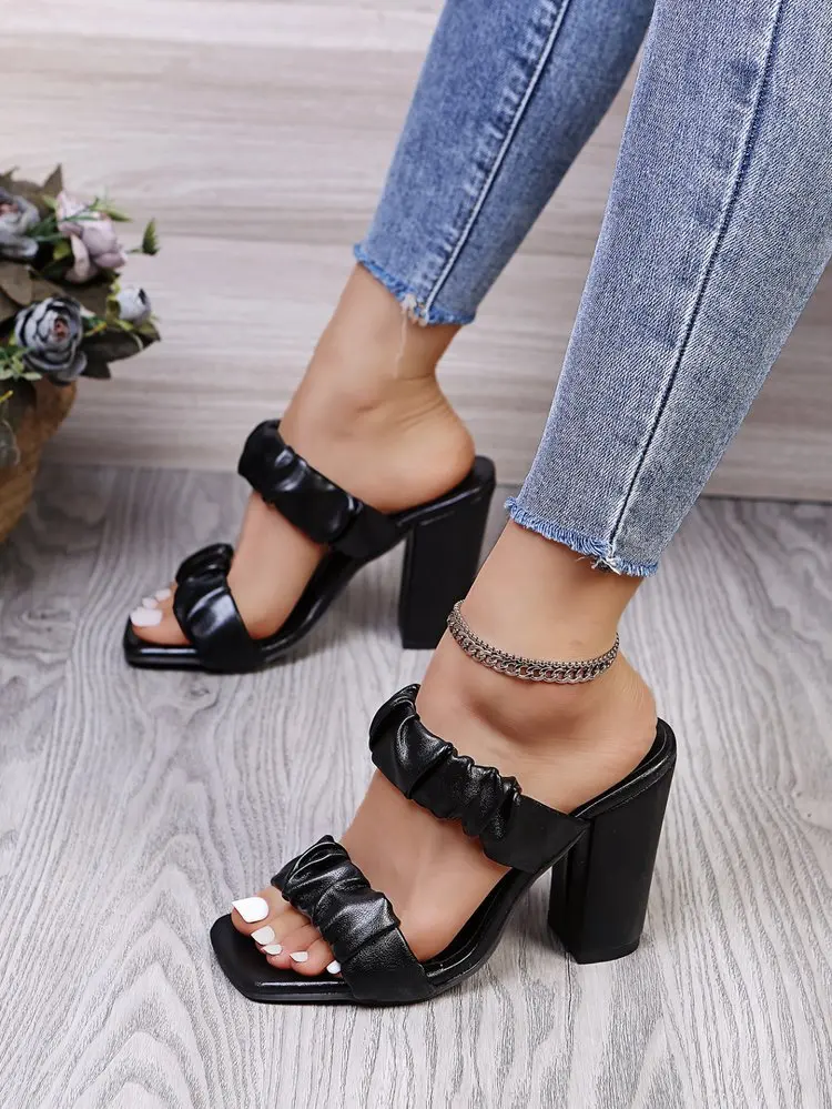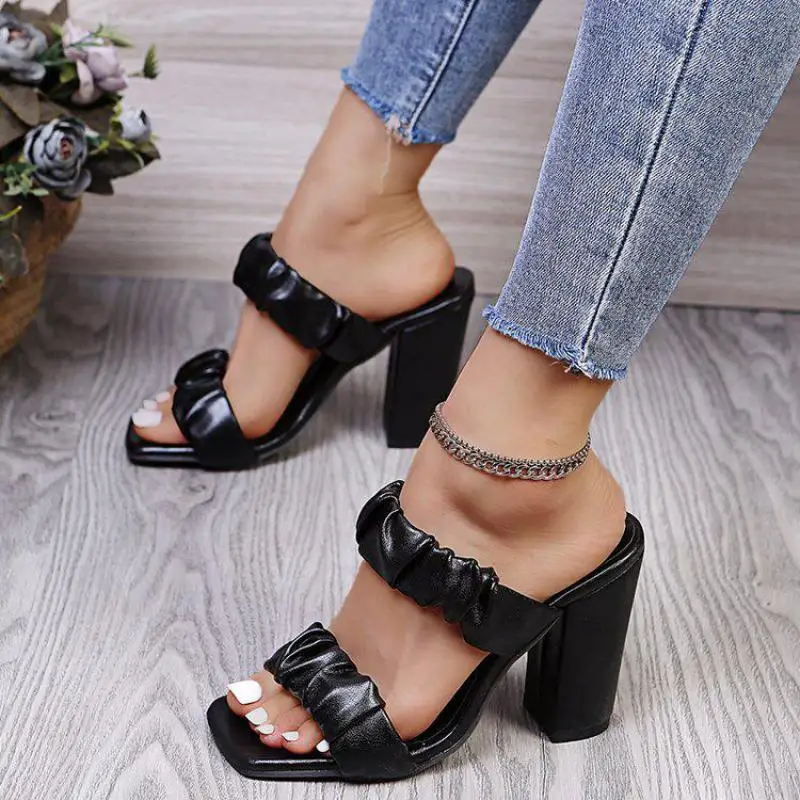 CRRCRRCRR Модные женские летние черные сандалии слипоны с узкими лентами; Обувь с квадратным носком; На массивном каблуке женские шлёпанцы для женщин размера плюс, женские туфли-лодочки