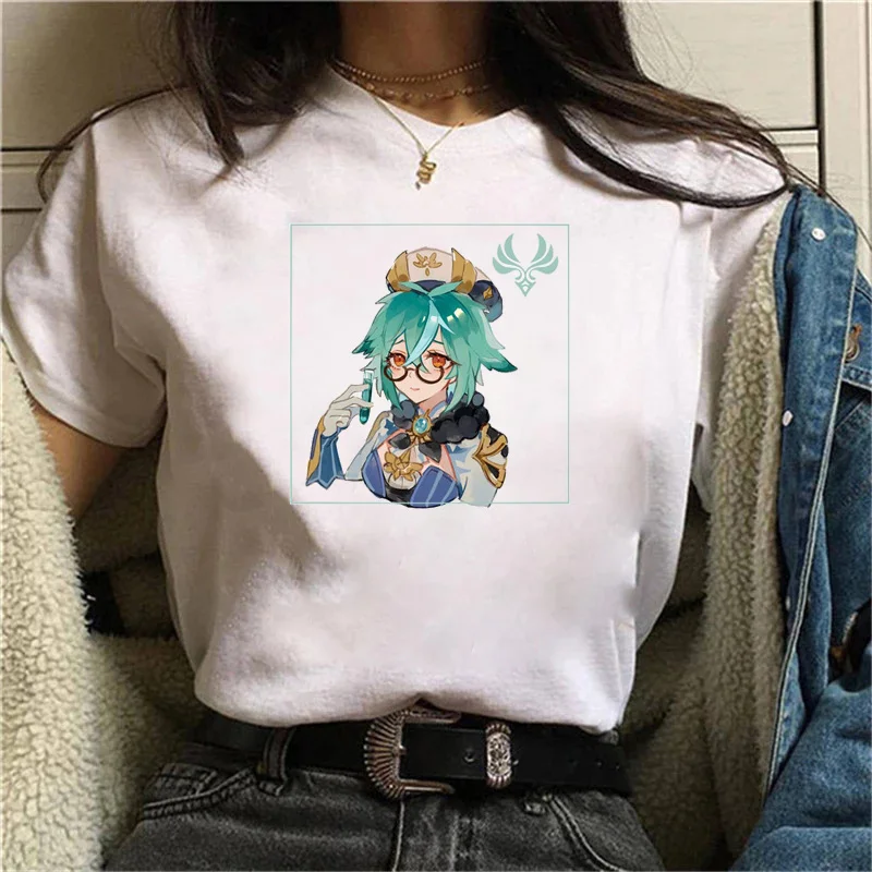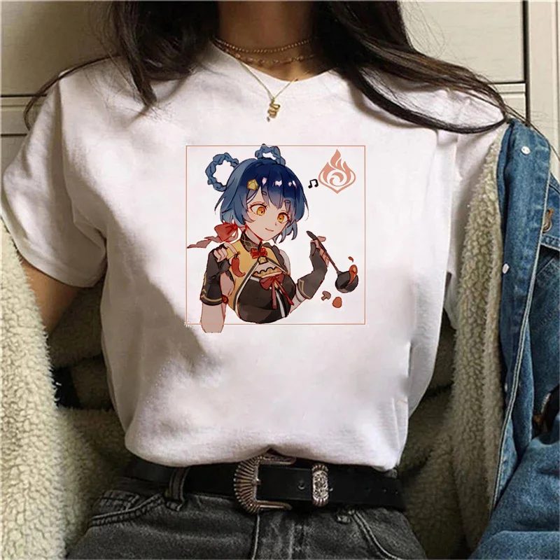 Японская футболка Zhongli Genshin Impact, женская одежда для коспле...