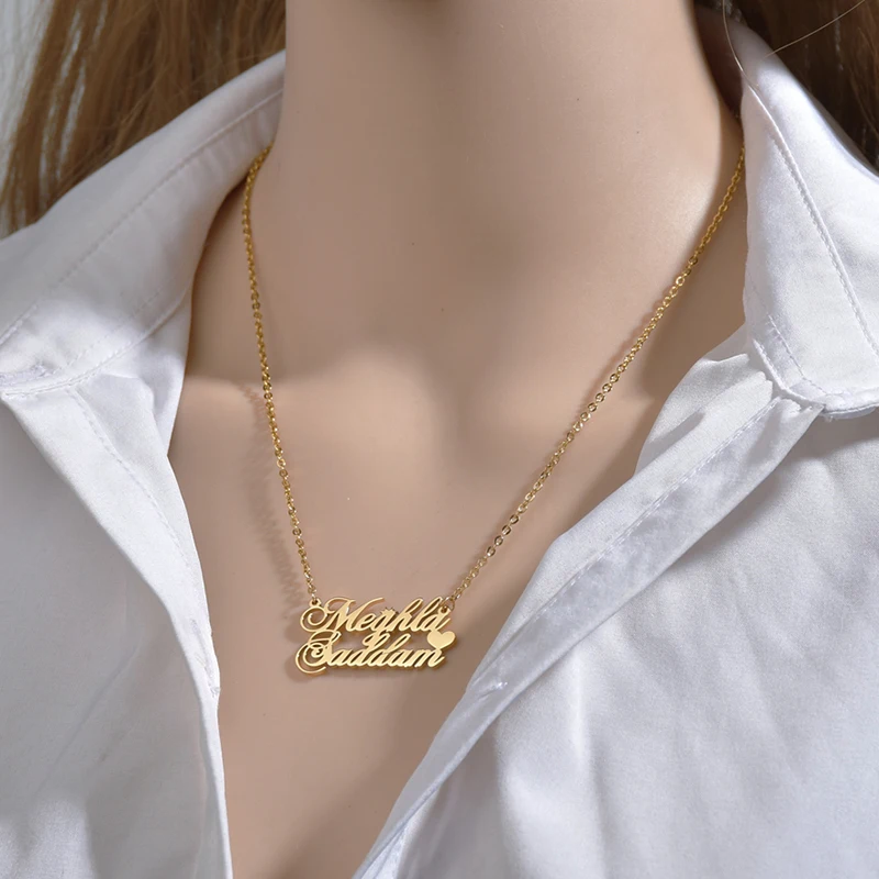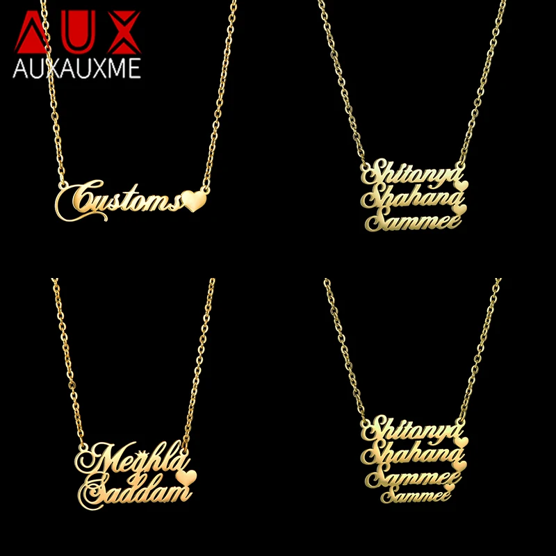 Ожерелье Auxauxme с подвеской в виде сердца с различными именами на заказ, нержавеющая сталь, персонализированная табличка с именем для семьи, парные ювелирные изделия, подарки