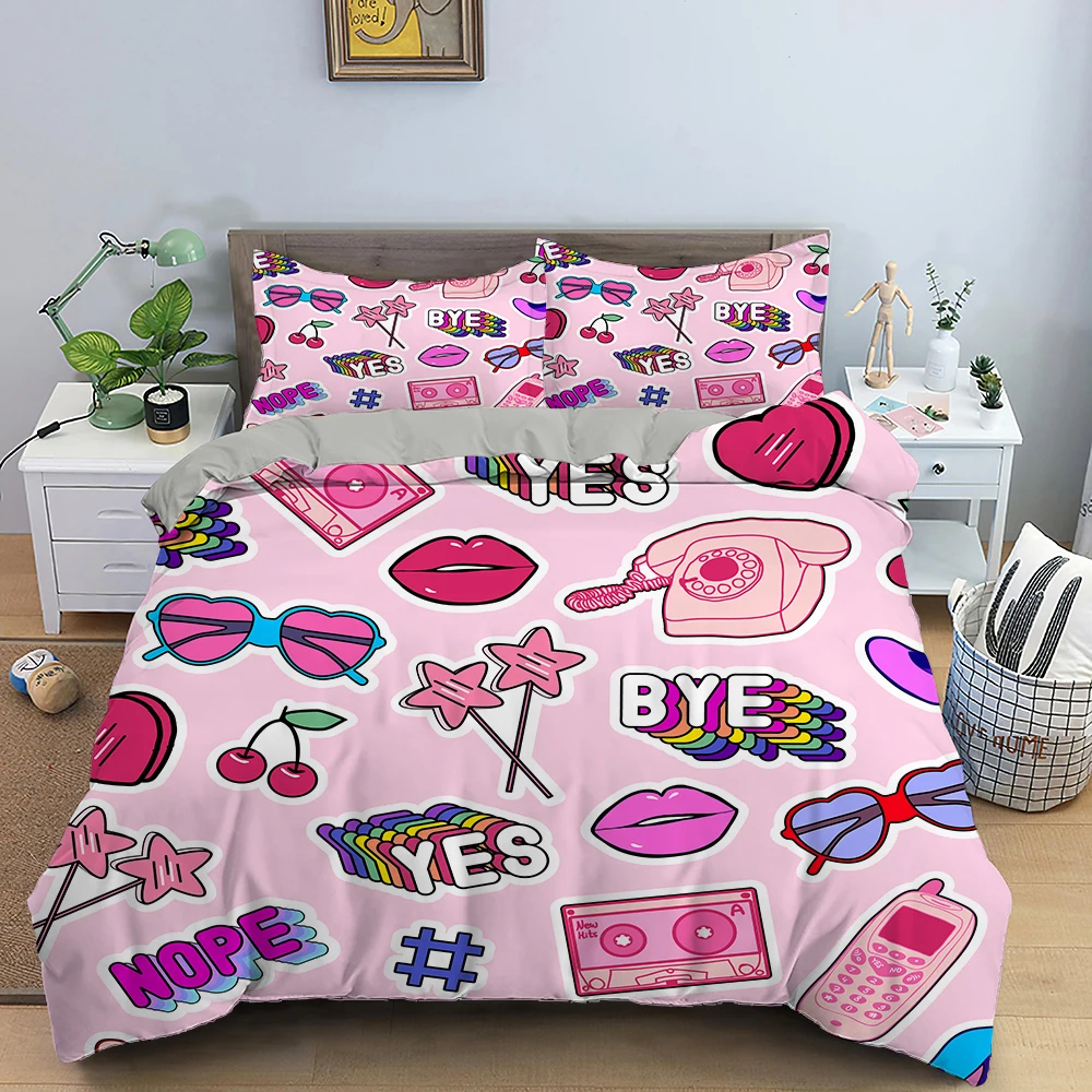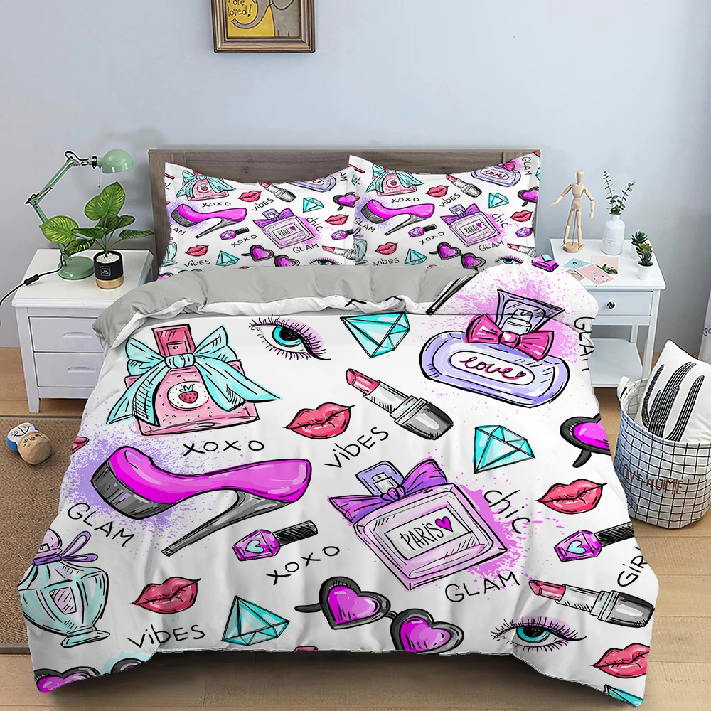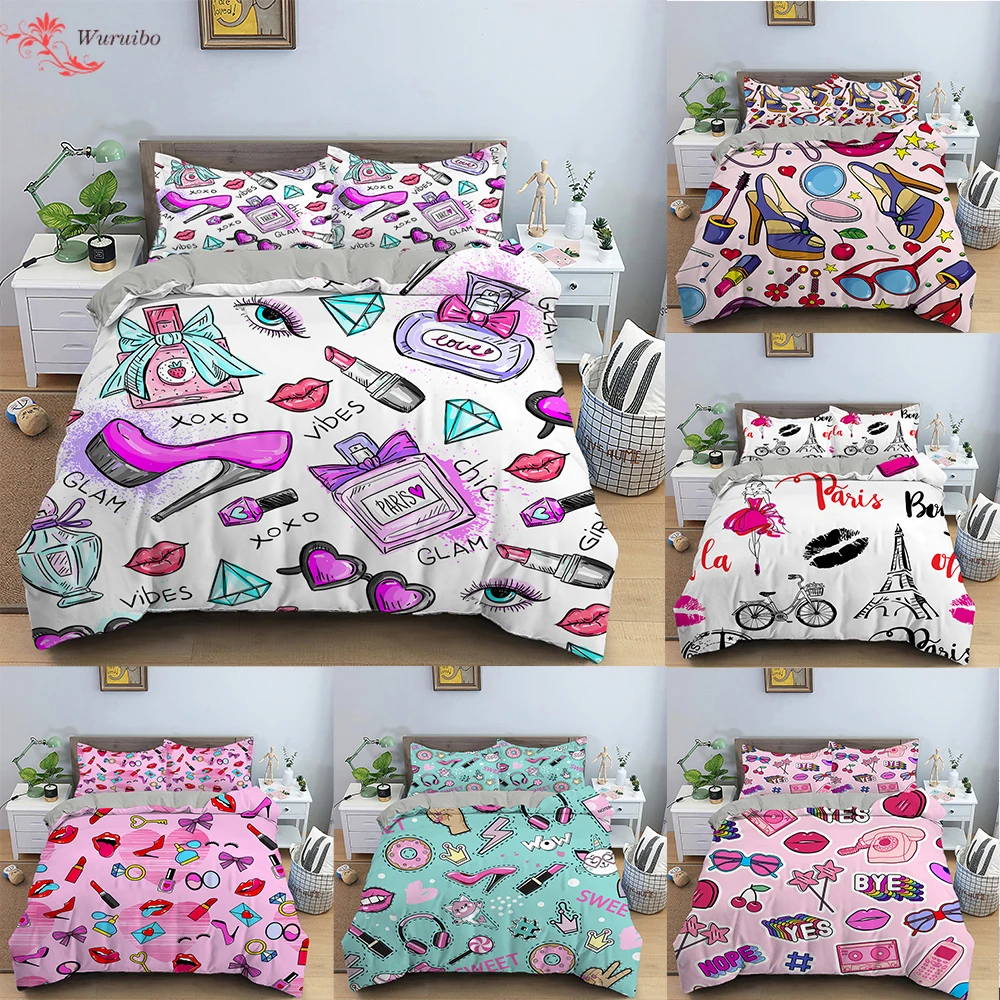 Роскошная губная помада Постельное белье косметический розовый Пододеяльники Крышка для девочек Для женщин подарок кровать набор домашнего текстиля девичьи постельное белье 23 шт