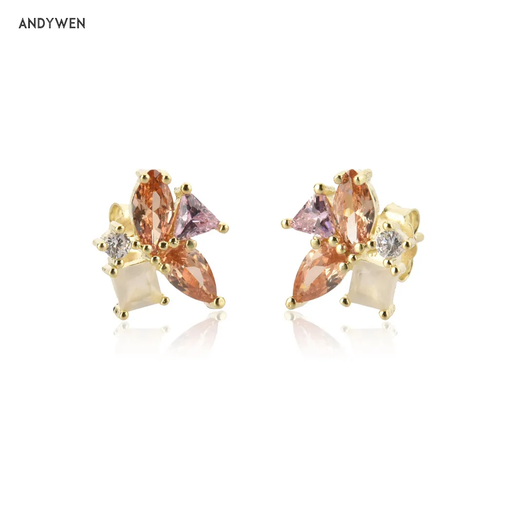 ANDYWEN 925 пробы серебро 2021 Золото Шампанское цветок женское украшение для вечеринки роскошный подарок серьги в стиле рок панк