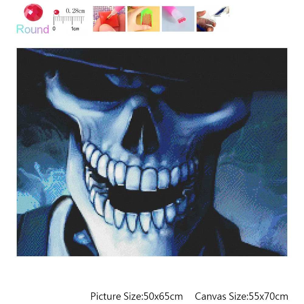 Круглая Полная дрель Алмазная картина череп голова смерти Сделай Сам Рукоделие мозаика вышивка 5D Вышивка крестиком Хэллоуин портретная картина