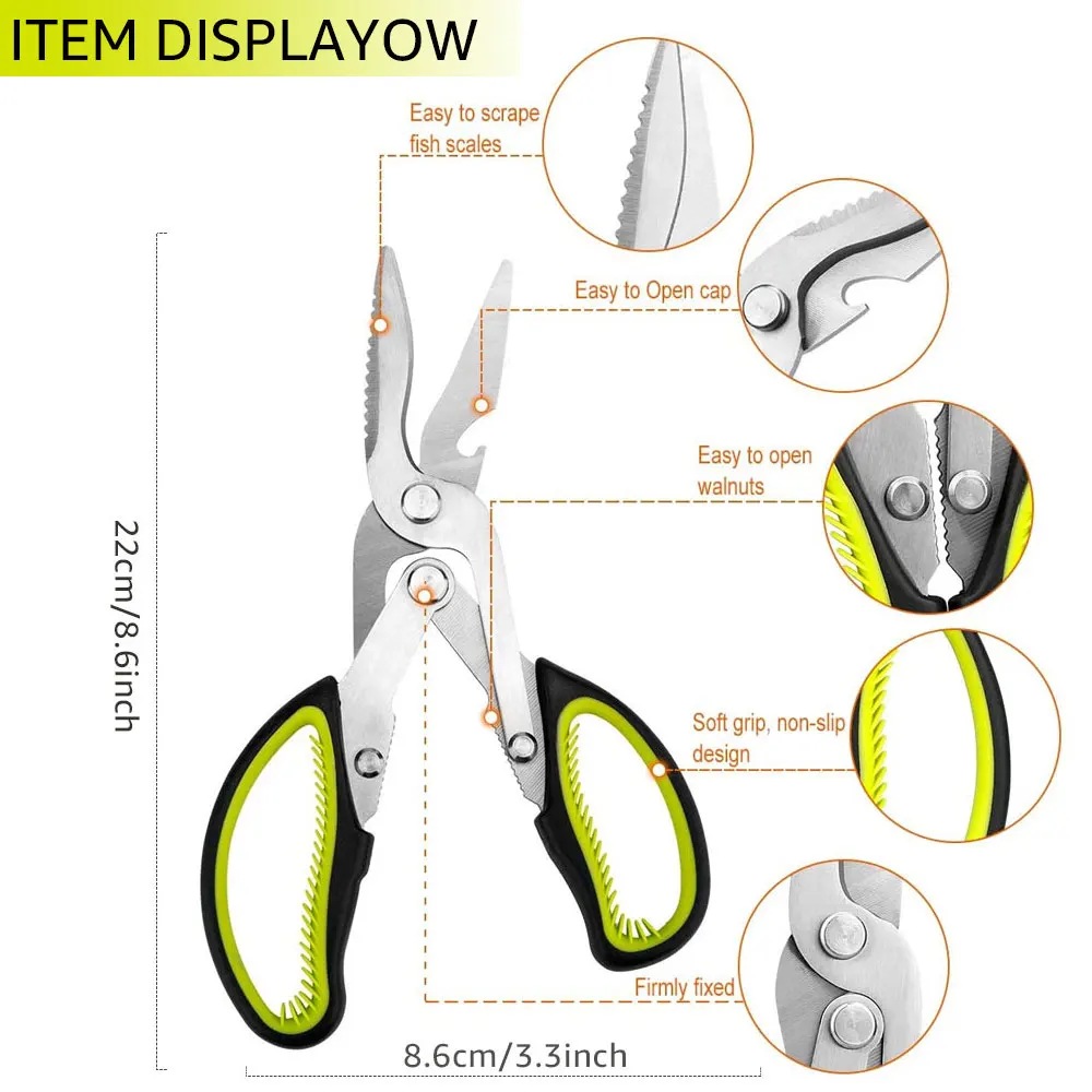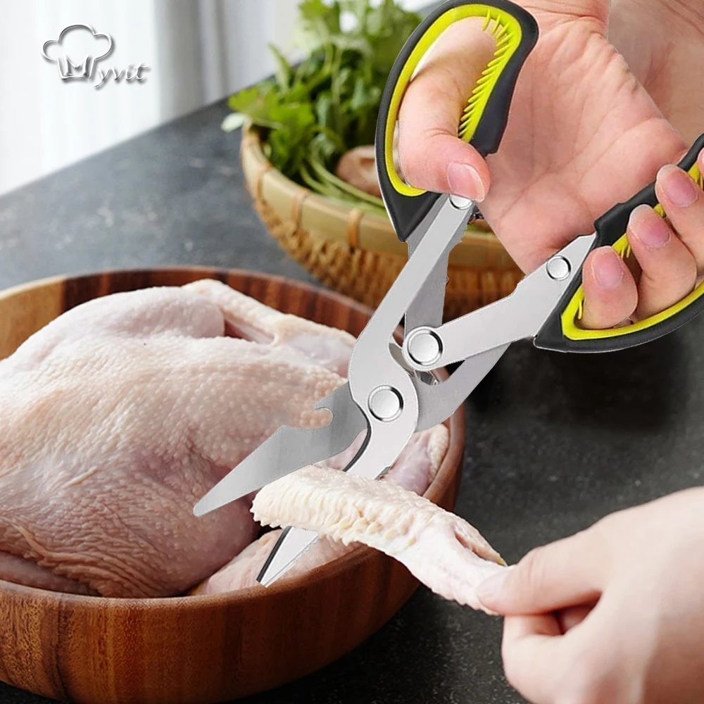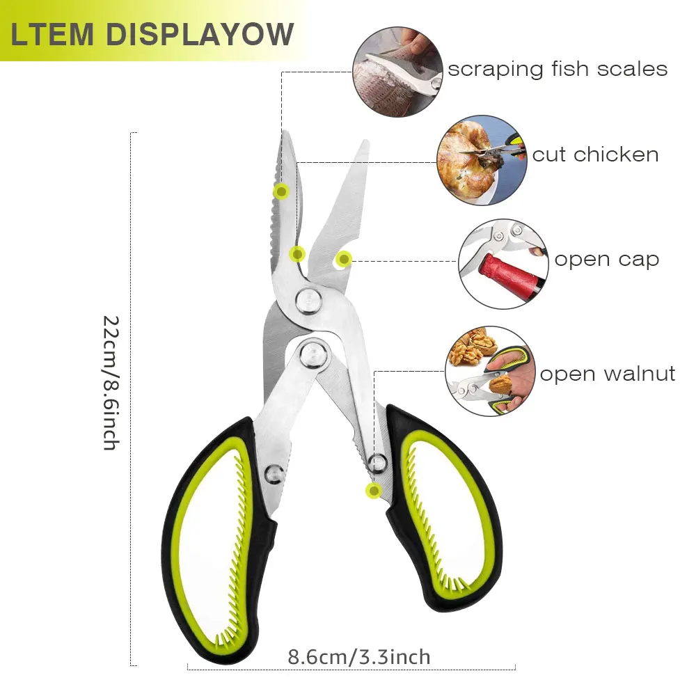 Кухонные ножницы 8,6 дюйма 6 в 1 2cr13, многофункциональные ножницы из нержавеющей стали для домашней птицы, костей, мяса, овощей, резак для барбекю