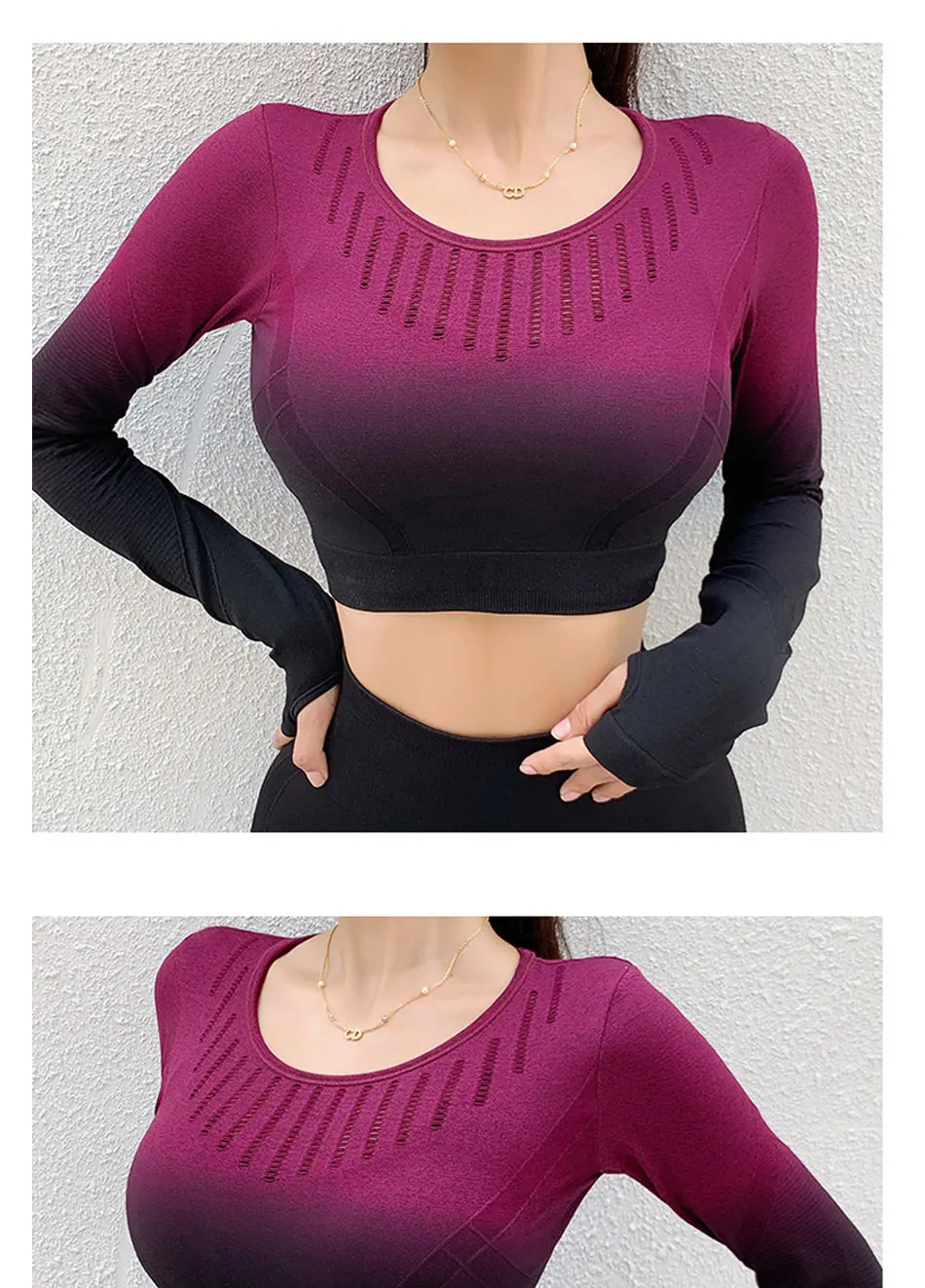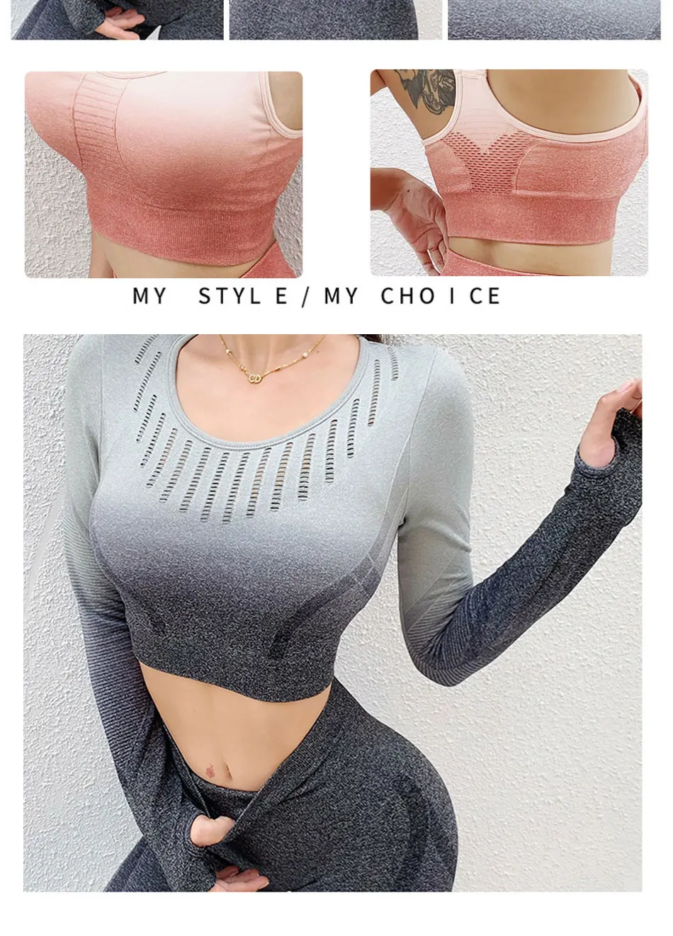 Женский комплект для йоги из 3 предметов, укороченный топ для тренажерного зала, компрессионная тренировка, Спортивная рубашка с длинным рукавом, леггинсы с высокой талией, спортивные штаны для фитнеса, одежда