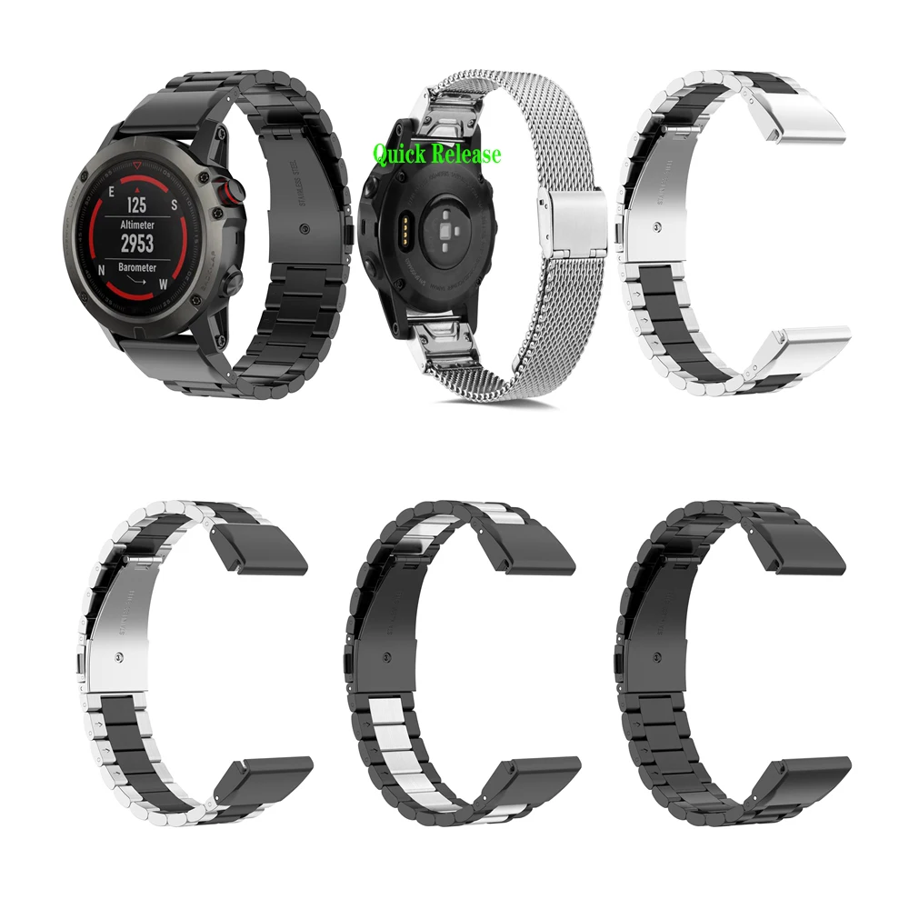 Ремешок из нержавеющей стали 20 мм 22 мм 26 мм для Garmin Fenix 6X 6S 6 5X 5 5S Plus 3HR Easyfit, металлический браслет для часов