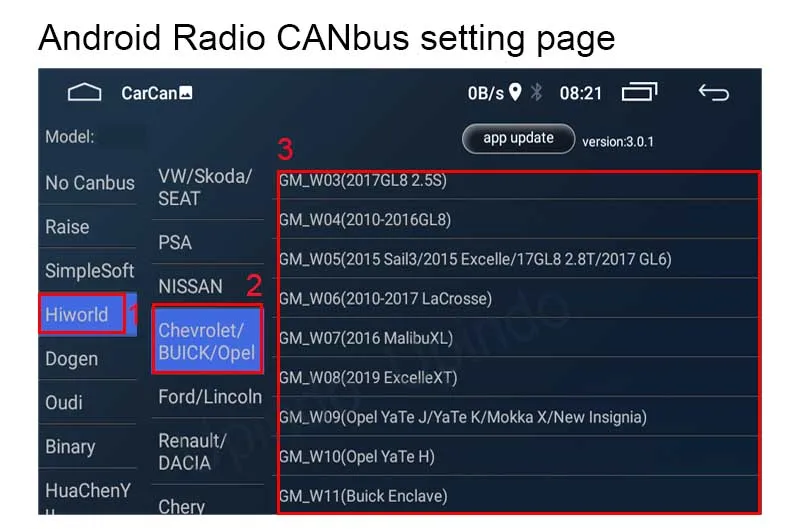 Дружеское напоминание:-- Если вы не знаете, как управлять Радио Android, чтобы войти в заводские настройки, пожалуйста, обратитесь к инструкции Android радио или проконсультируйтесь с продавцом Android радио.-- Если вы не знаете пароль для установки на Android radio factory, пожалуйста, обратитесь к инструкции Android radio или обратитесь к продавцу Android radio.-- При настройке canbus, если ваша модель автомобиля не обнаружена, пожалуйста, выберите другую модель того же бренда или проконсультируйтесь с продавцом Android radio.