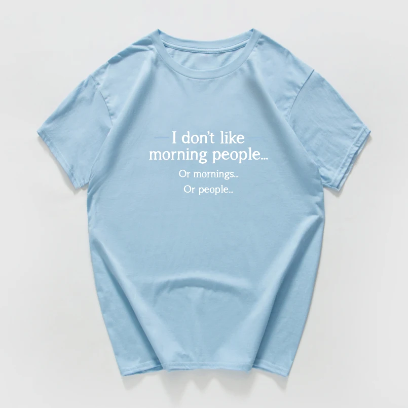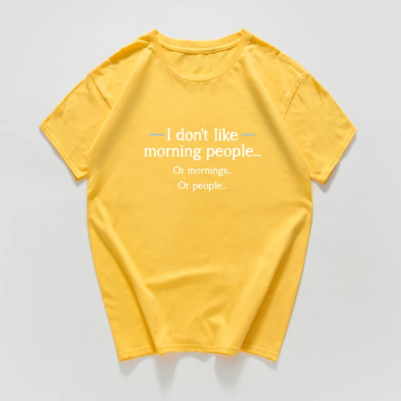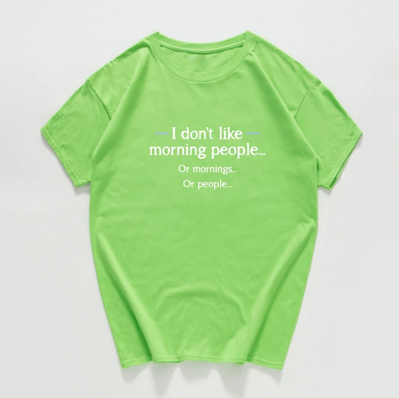 Футболка с принтом Я не люблю утренних людей, Женские повседневные футболки, Забавные топы с круглым вырезом для девушек, летние топы с коротким рукавом, футболки в стиле хип-хоп