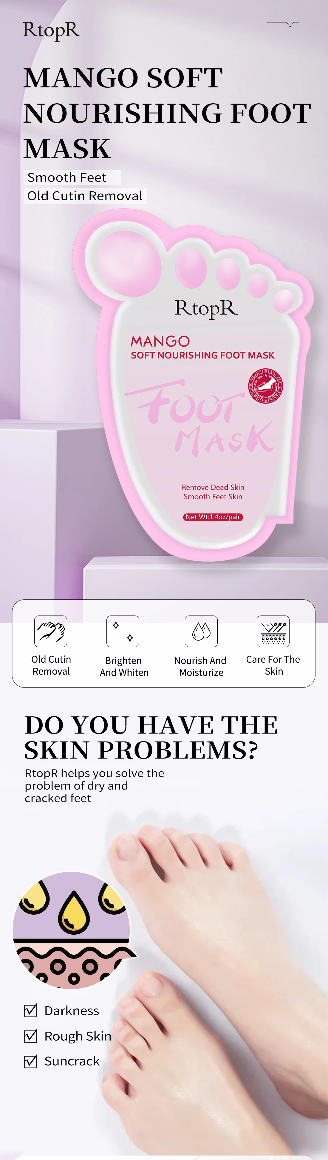 Богатая фруктовой кислотой, молочной кислотой и экстрактом растений манго, эффективно смягчает мозоли, удаляет ноги старыми роговыми и грязными. Более того, различные увлажняющие и питательные ингредиенты имеют эффект, делают кожу мягкой, нежной, гладкой, предотвращают грубые сухие растрескивания, пусть ваши ноги все более и более нежные.