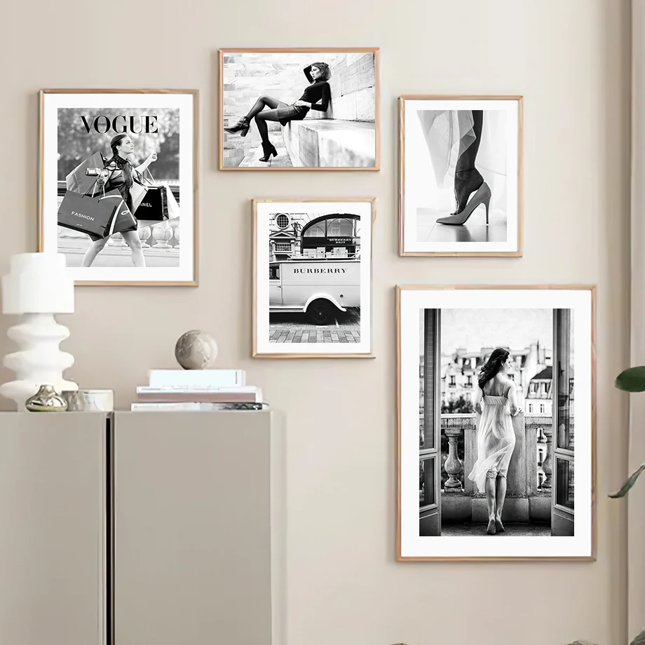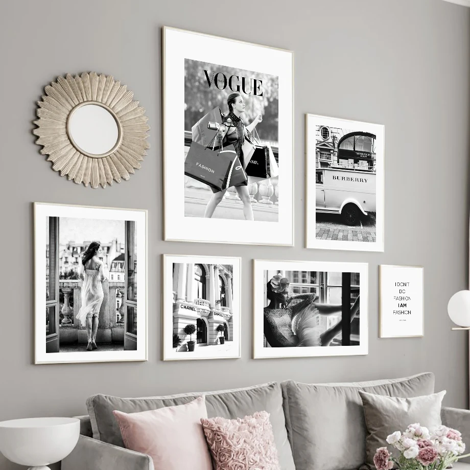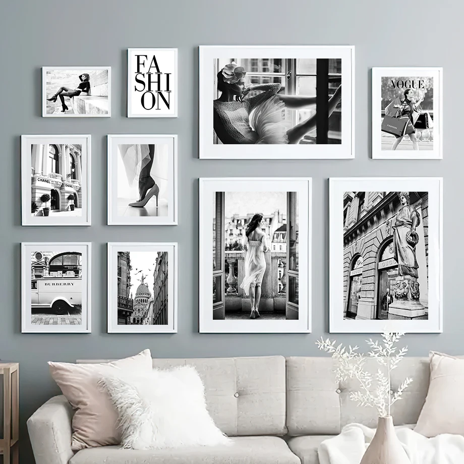 Настенная Картина на холсте Париж Модная девушка роскошный магазин черные белые скандинавские постеры и принты настенные картины для гостиной