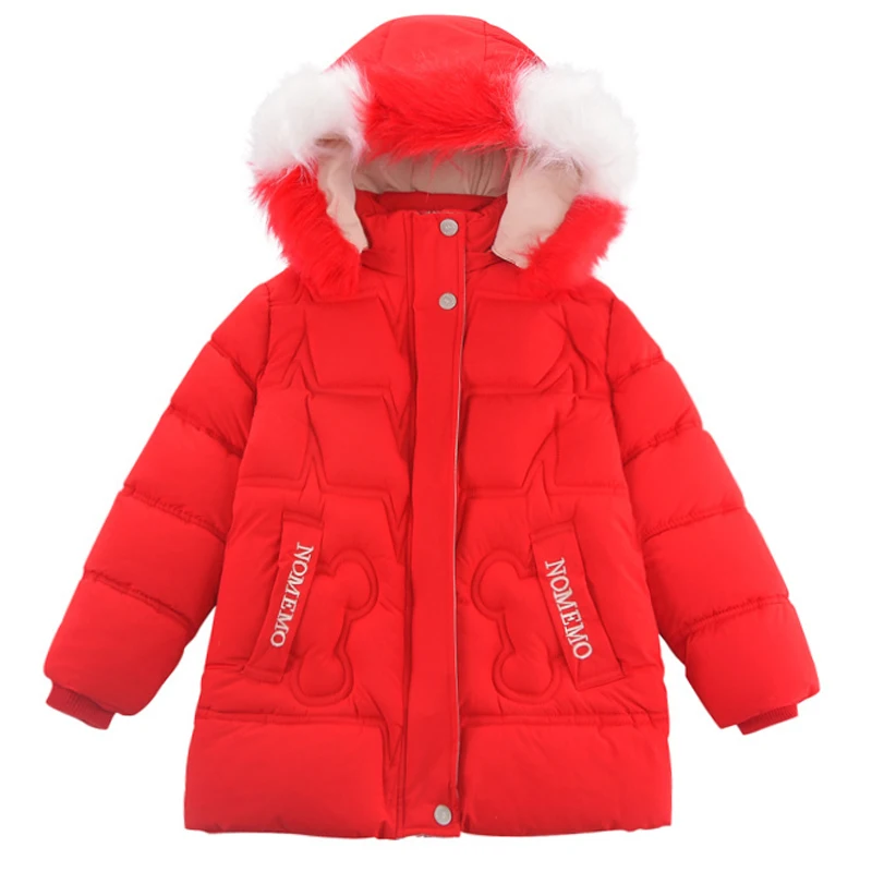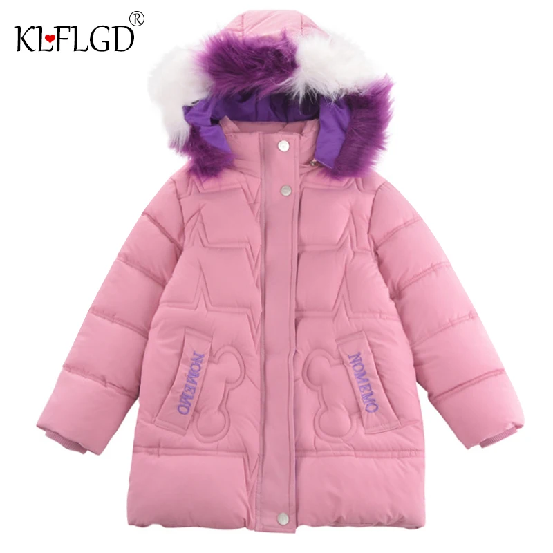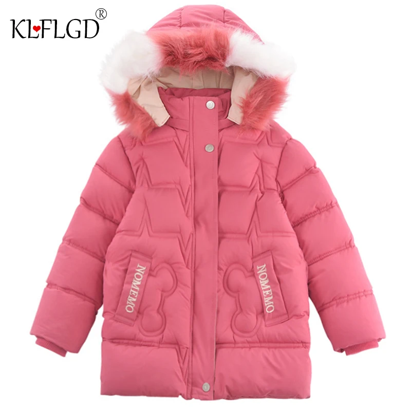 Зимняя Новинка, хлопковая одежда для девочек 4-12 лет, детское утепленное хлопковое пальто средней длины на пуху с большим воротником для волос