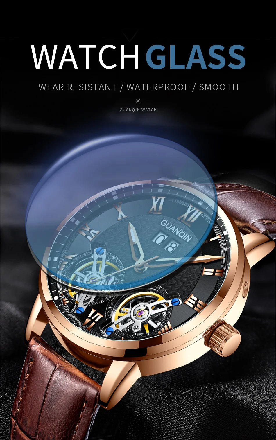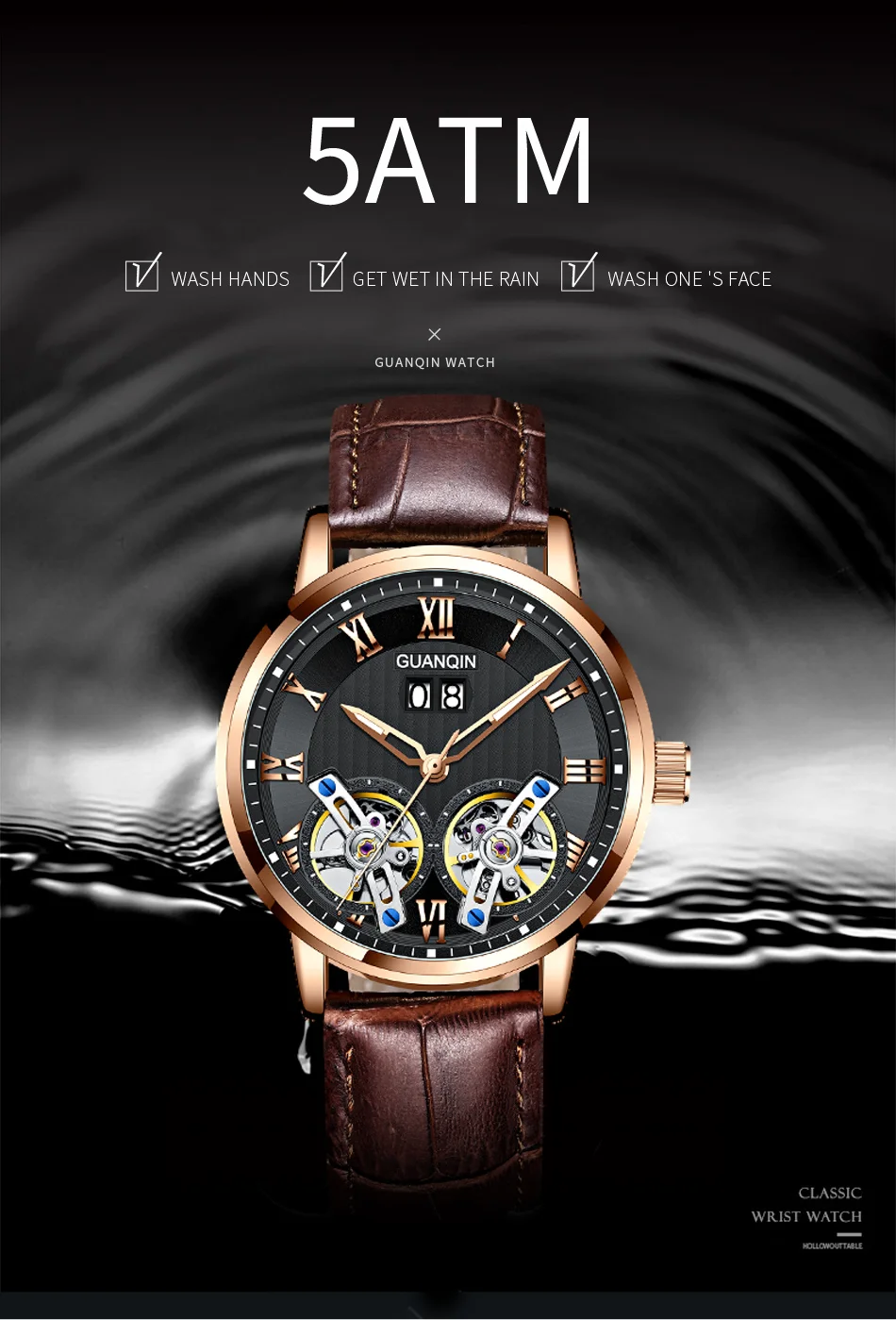 Часы GUANQIN мужские, механические, водонепроницаемые, 30 м