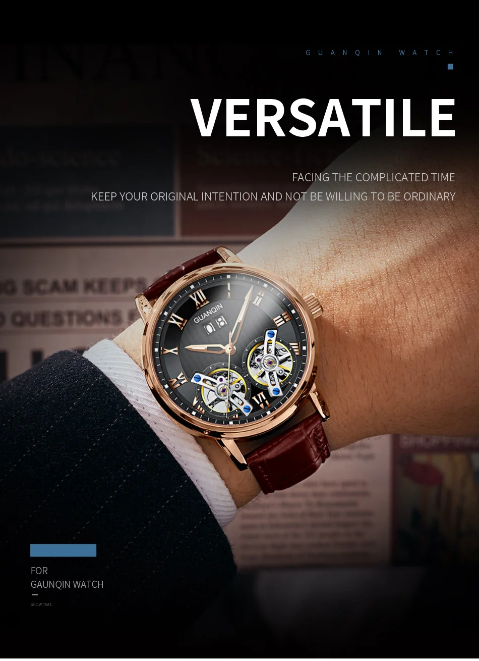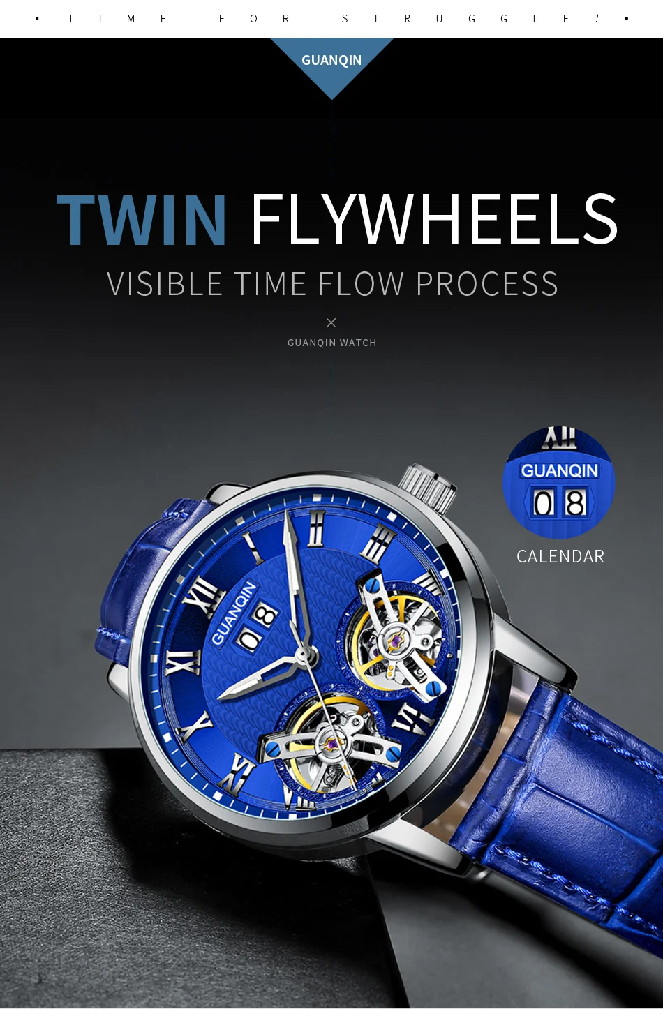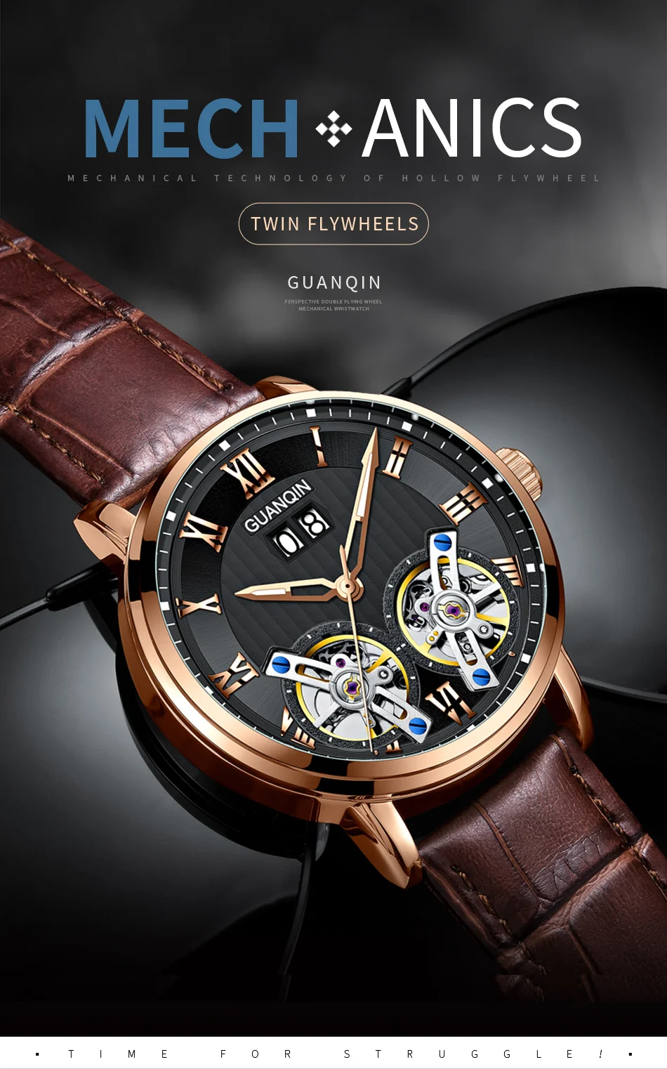 Часы наручные GUANQIN мужские с двойным маховиком, брендовые Роскош...