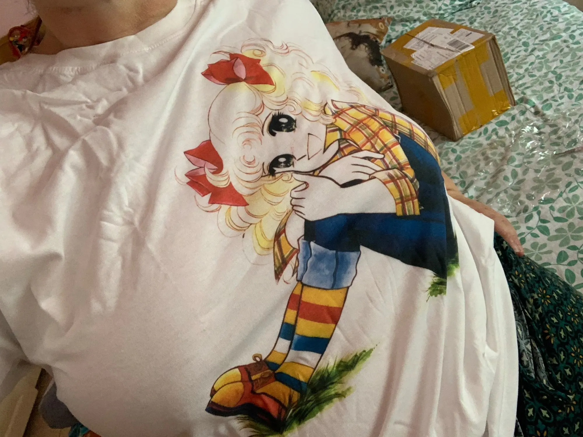 Супер мило! Рубашка выглядит хорошо, это хлопок, и рисунок, как на фото, он прибыл очень быстро. Я рекомендую это.