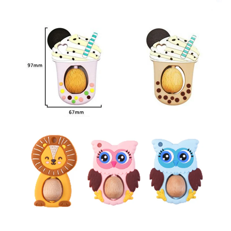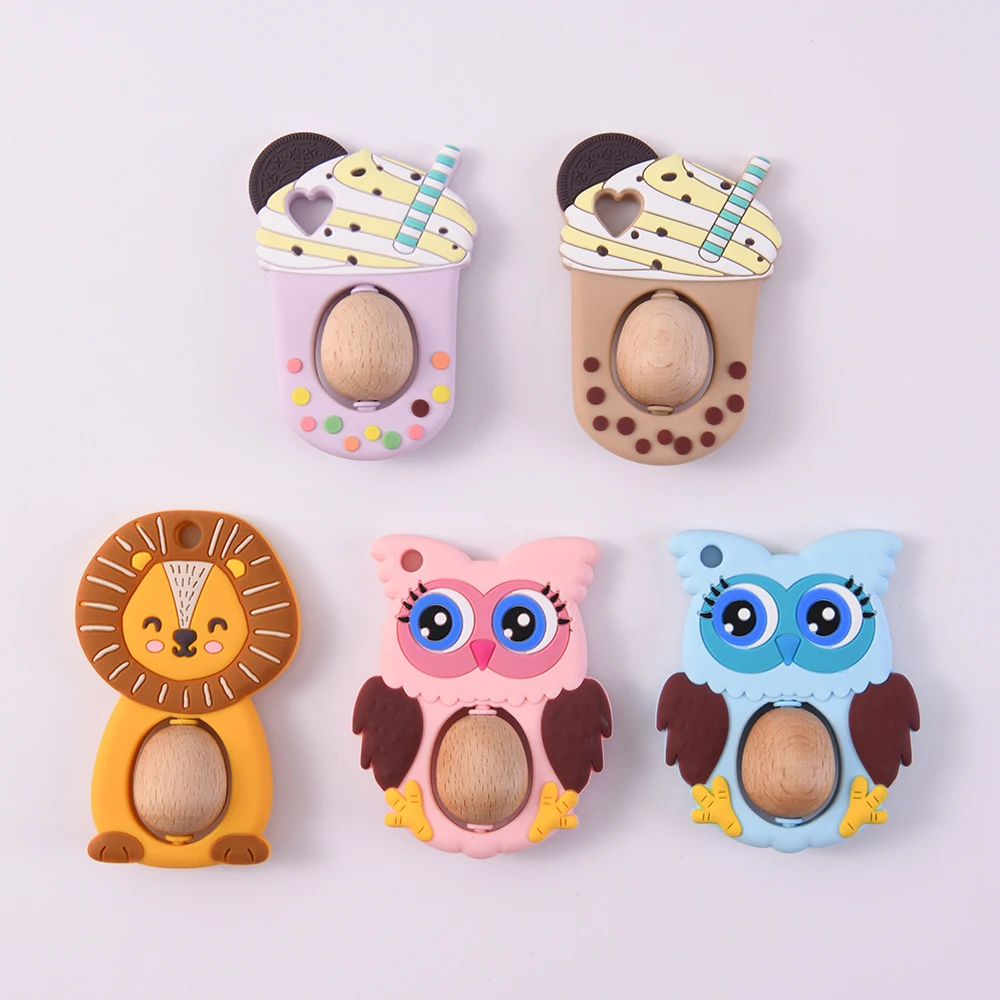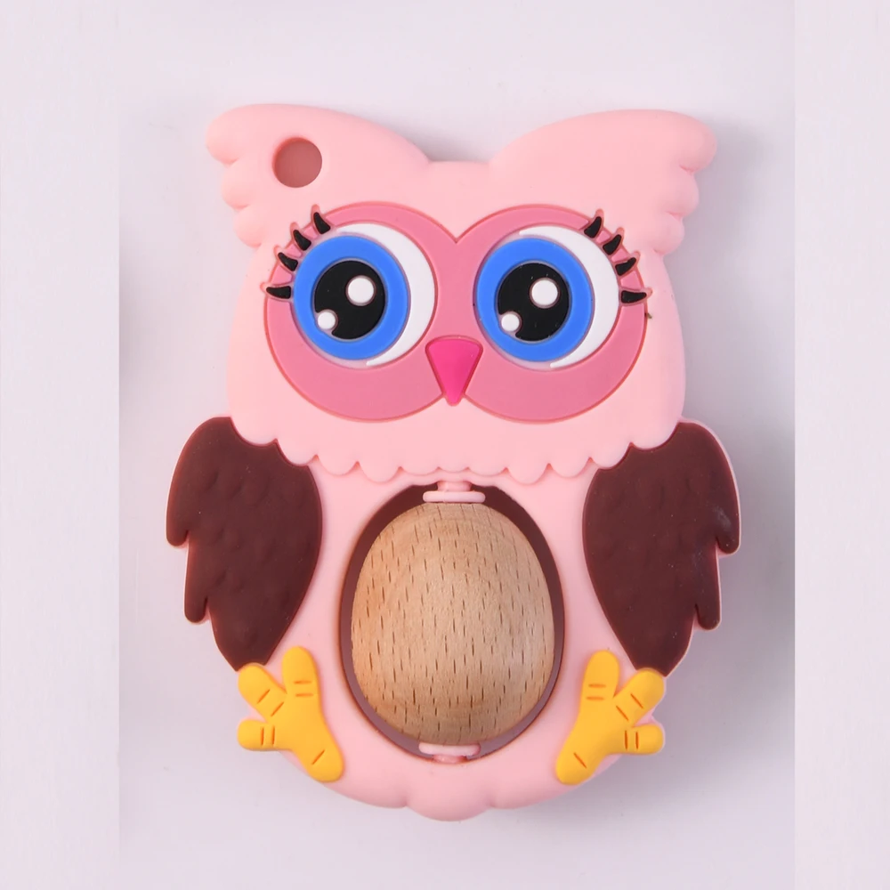 Силиконовая сова с деревянными бусинами, не содержит бисфенола А, П...