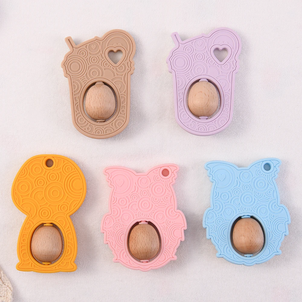 Силиконовый Прорезыватель для зубов, с деревянными бусинами