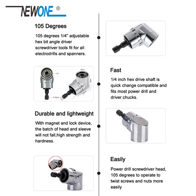 Насадка для дрели под прямым углом 105 градусов и комплект гибких удлинителей под углом для дрели или шуруповерта 14 дюйма, адаптер для розетки, инструмент