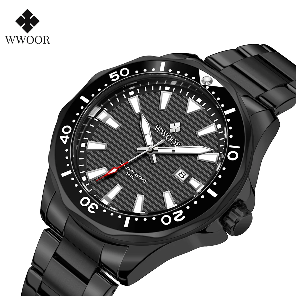 WWOOR 2021 новые роскошные модные черные часы мужские спортивные для дайвинга кварцевые светящиеся водонепроницаемые военные наручные часы Relogio Masculino.