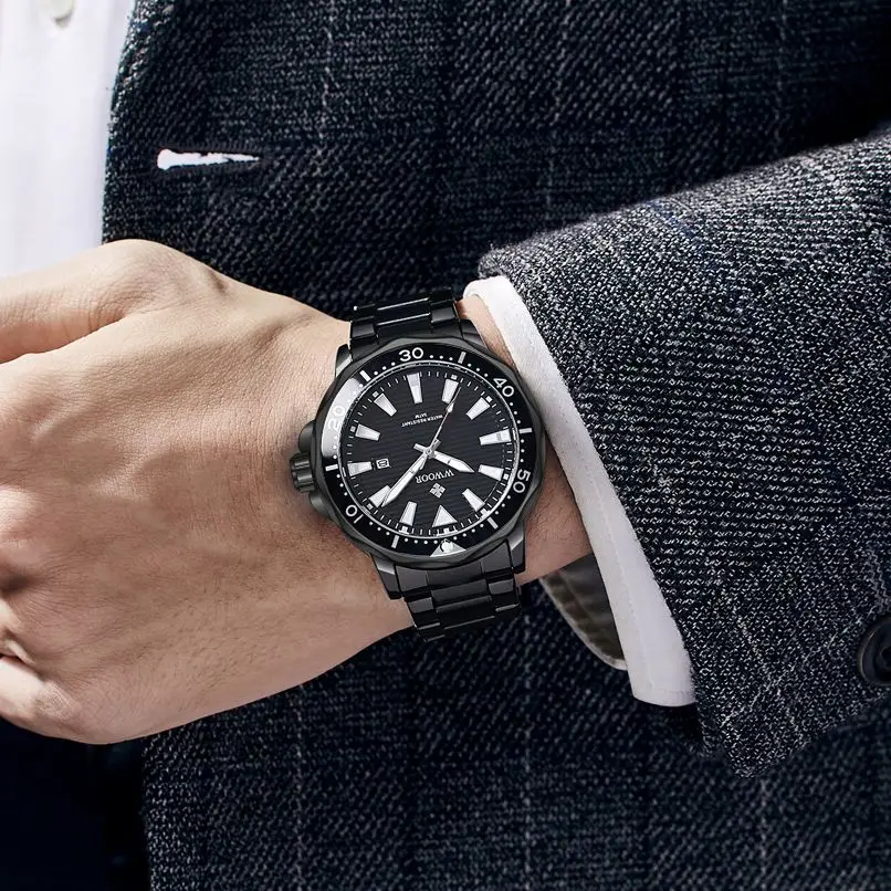 WWOOR 2021 новый дизайн полностью черные стальные мужские часы с дайвером светящаяся Автоматическая Дата